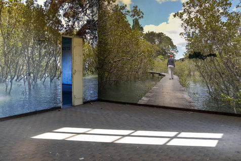 « Murmures du monde » émerge alors que nous ne pouvons aller au-delà de 100 km de chez nous, déconfinement progressif oblige. Je rentre juste de trois mois et demi passés en Nouvelle-Zélande. Ses paysages majestueux irriguent les strates supérieures de ma mémoire d'autant plus facilement que, de retour à Paris, j'ai la sensation d'être cloitrée entre les murs de mon appartement. Je repense à ceux de la Caserma Pepe, site militaire abandonné depuis 20 ans sur l'île du Lido de Venise. Une enfilade de pièces vides aux murs blancs travaillés par le temps, aux portes, volets et fenêtres brinquebalants.