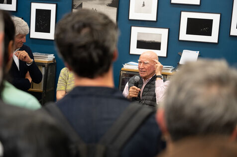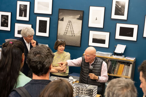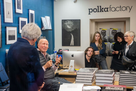Sebastião Salgado presents his book Les Oiseaux at the Polka Factory gallery in Paris on October 24, 2024 during a discussion with Nathalie Chapuis, Atelier EXB collection director, and Alain Genestar. After sharing his reportage memories with an enthusiastic audience, he takes part in a book-signing session.