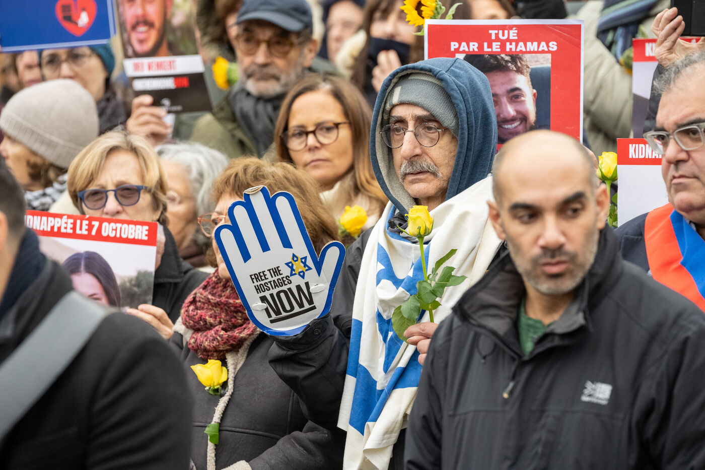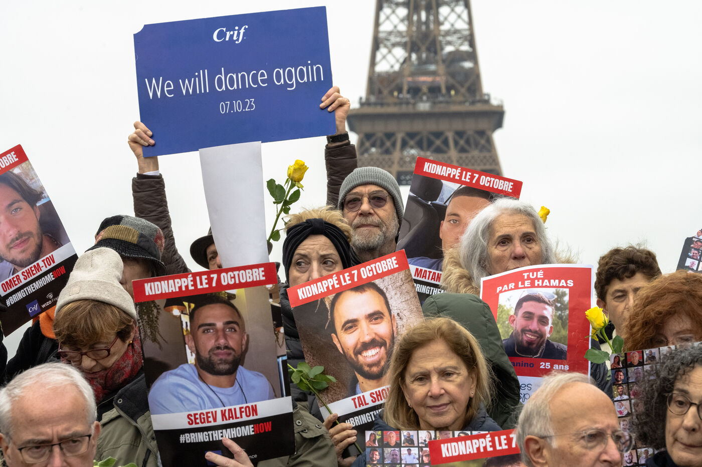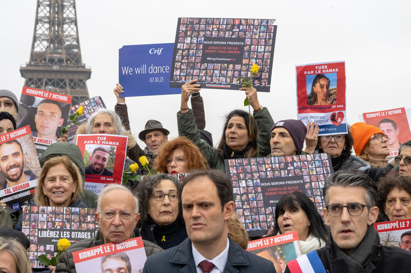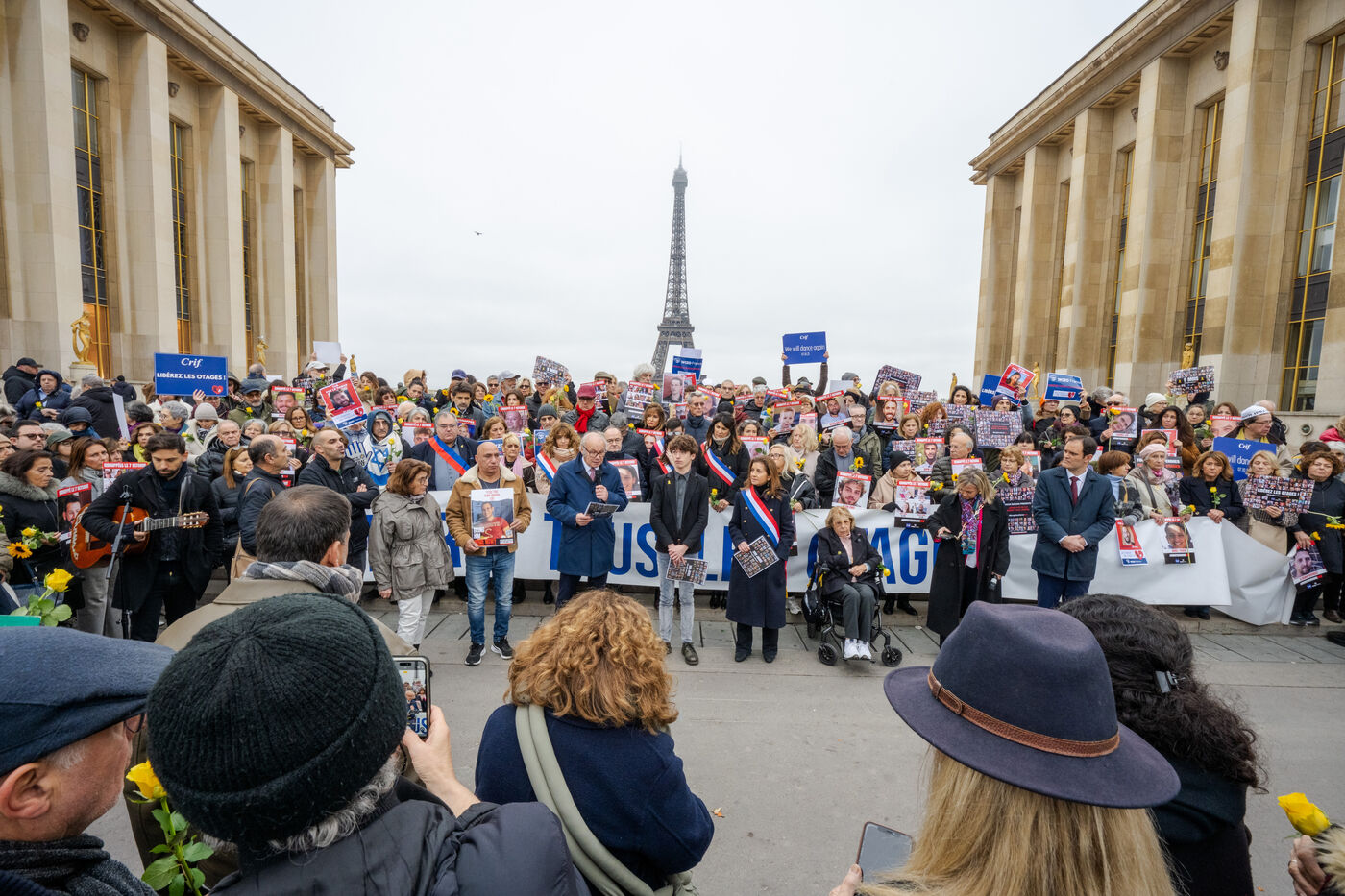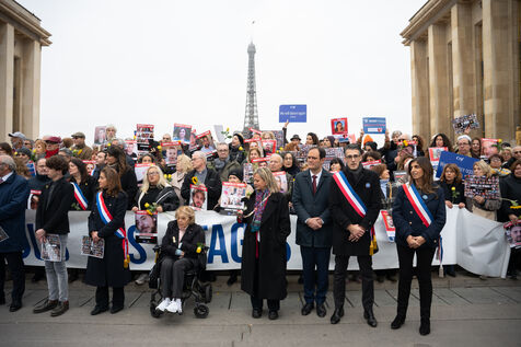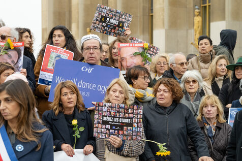 Since the start of the hostage situation following the Hamas terrorist attack on October 7, 2023, a gathering has been held every Friday at the Place du Trocadero in Paris. It will be 9 months on November 9, 2024. The rally on November 8, 2024 was particularly symbolic, as it marked the 399th day of the hostages' captivity. It brought together celebrities and anonymous people carrying placards inscribed with the hashtag BringThemHomeNow and photos of the 101 faces of those still held or who died in detention in Gaza. Yellow roses and sunflowers symbolized hope for the hostages' release. The initiative was led by the collective Les Mères de l'Espoir, with the support of the CRIF and Wizzo France. It will run until the last hostage is freed, every Friday from 12:15 to 12:45.
