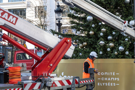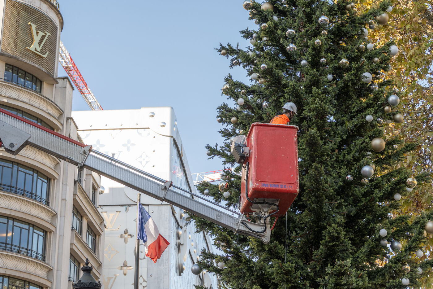 This year's 2024 Christmas illuminations on the Avenue des Champs Elysées in Paris will be marked by the celebration of the Tuileries Gardens balloon bowl that seduced the public during the Paris 2024 Olympics. Decorators prepared the illumination of a huge fir tree before the launch of the Christmas decorations on the avenue des Champs Elysées in Paris from Sunday November 24, 2024 to early January 2025.