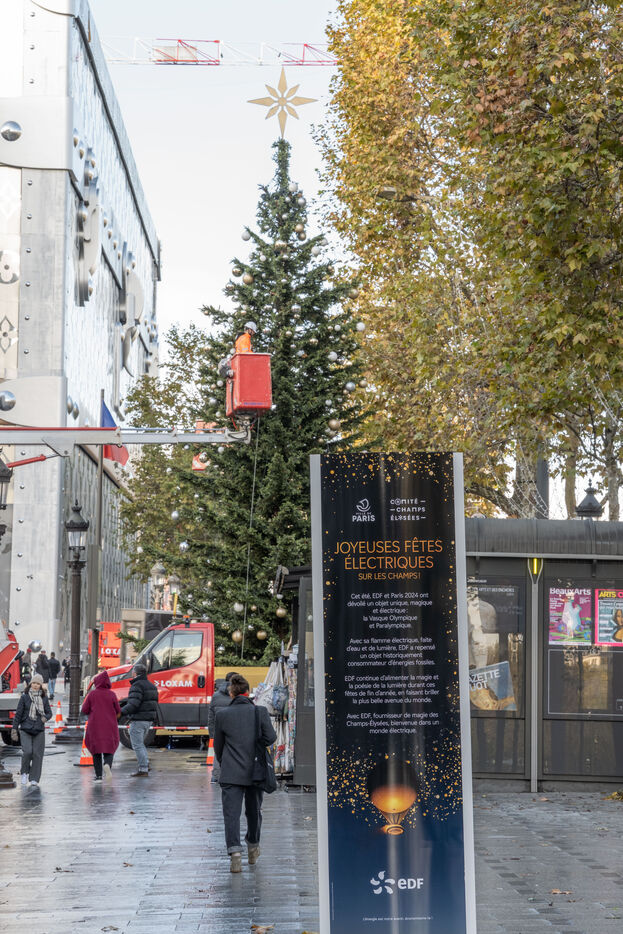 Cette année les illuminations de Noël 2024 sur l'avenue des Champs Elysées à Paris seront marquées par la célébration de la vasque du ballon du jardin des Tuileries qui avait séduit le public pendant les JO de Paris 2024. Des décorateurs ont préparé l'illumination d'un immense sapin avant le lancement des décorations de Noël sur l'avenue des Champs Elysees à paris à partir du dimanche 24 novembre 2024 jusqu'à janvier 2025.