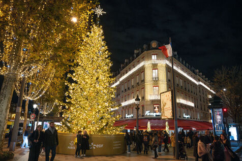 This year's 2024 Christmas illuminations on the Avenue des Champs Elysées in Paris are marked by the celebration of the balloon vasque in the Jardin des Tuileries. It had captivated the public during the Paris 2024 Olympics. Decorators prepared a huge fir tree before the illumination ceremony.