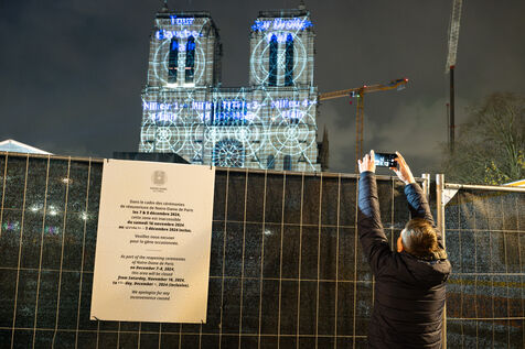 Five years after the tragic fire of April 2019, Notre-dame Cathedral in Paris is gearing up for a weekend of launch ceremonies for the reopening on Saturday, December 7 in Paris, France. The cathedral once again sparkles in the heart of the city with renovated stained-glass windows, a new spire and chevet cross. Meanwhile, work continues on the cathedral's exterior.