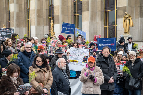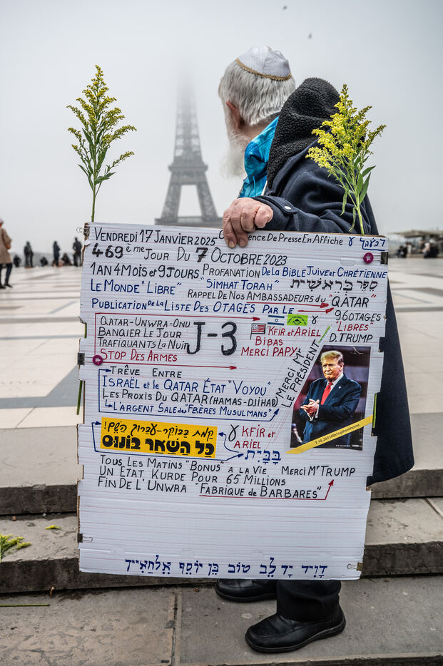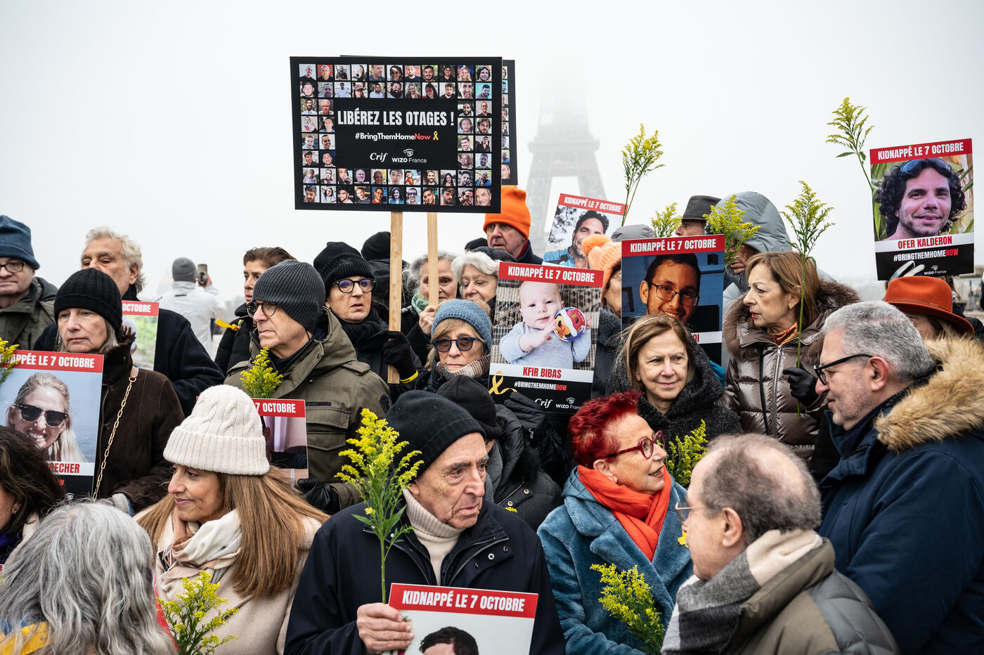 Since the start of the hostages' detention following the Hamas terrorist attack on October 7, 2023, a rally has been held every Friday at the Place du Trocadero in Paris. The rally on January 17, 2025 marked the 469th day of captivity in Gaza, on the eve of a ceasefire agreement leading to their release. The rally brought together celebrities and anonymous people carrying placards inscribed with the hashtag BringThemHomeNow and photos of the faces of those still held or who had died in detention. A placard showed the image of Donald Trump as a game-changer at the center of the stakes for the hostages' release.