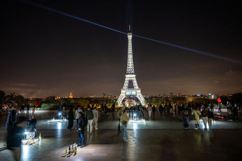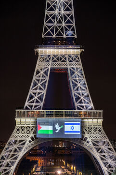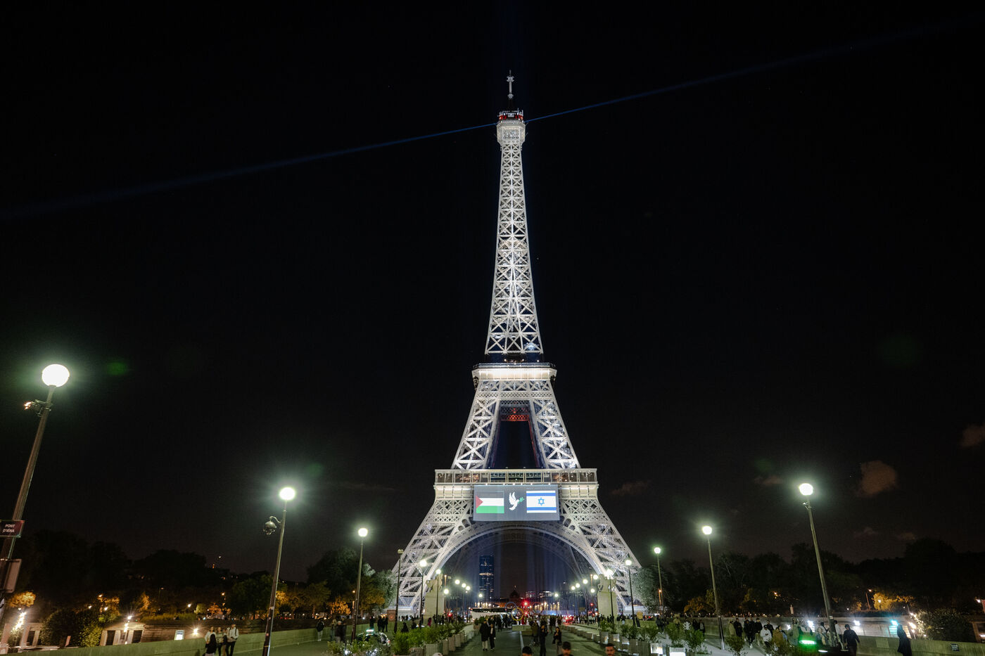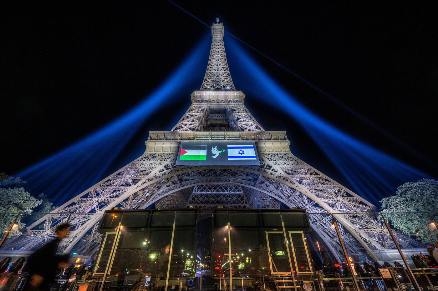 Projection of Palestinian and Israeli flags on the Eiffel Tower