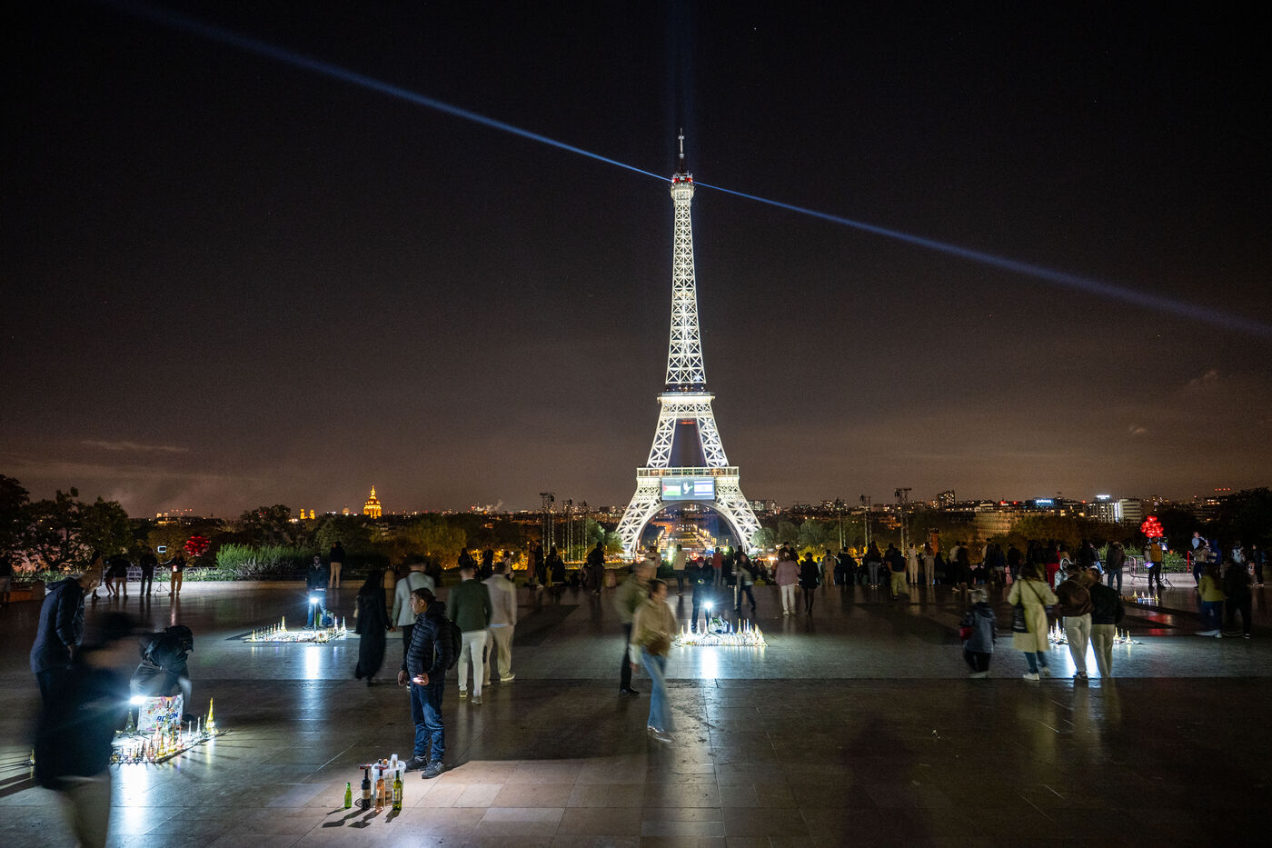 Projection des drapeaux Palestiniens et israéliens sur la Tour Eiffel