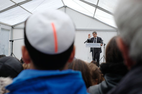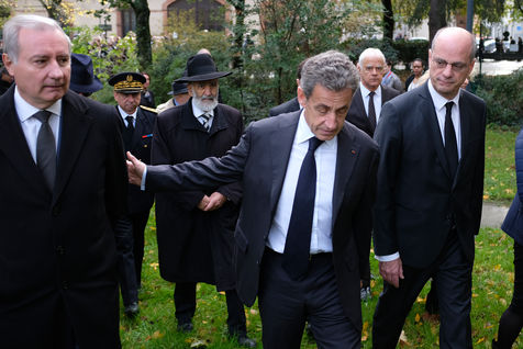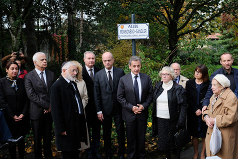 Baptême de l'allée Monsonégo-Sandler à Toulouse en présence de Jean-Luc Moudenc, maire de Toulouse, Nicolas Sarkozy, ancien président de la République, Jean-Micher Blanquer, ministre de l'éducation nationale et de la jeunesse. En hommage à Myriam Monsonégo, Arié, Gabriel et Jonathan Sandler, victimes du terrorisme en mars 2012.