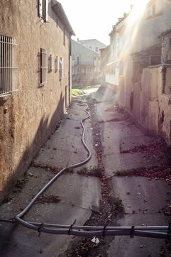It was difficult to meet a resident that morning, but the weather was fine. Migratory birds fly over the village. The walls in the centre of the village are still covered with large wooden palisades to avoid the intrusion of curious people. We end up crossing the path of a villager who quickly opens the doors of his completely renovated house to us, a unique case in the village. He absolutely wants to show us his mother's house a stone's throw away. As soon as we walk out the door, our eyes get lost in an empty ground floor where the mere presence of "anti-humidity" devices breaks with the tranquility of the place. The traces left by the wave are still very much present on the walls of the house as well as in the steep alleys of the small village of Aude.