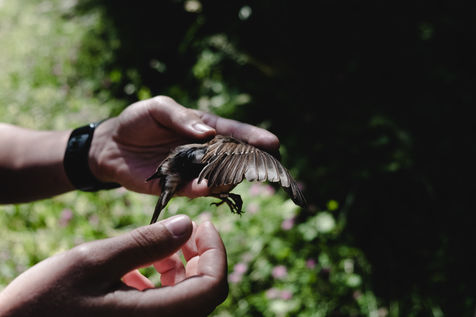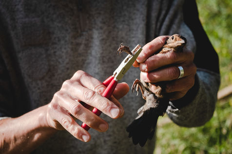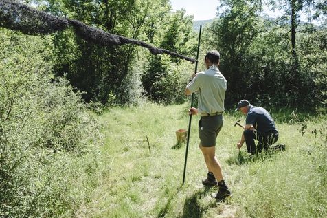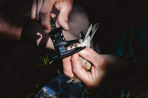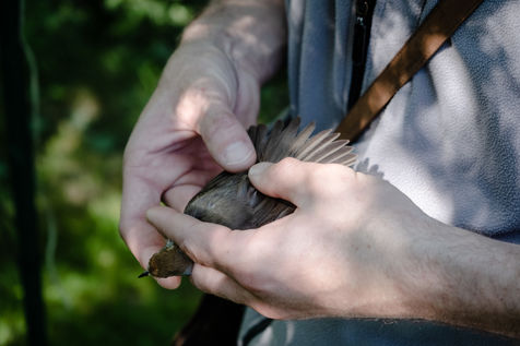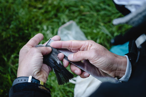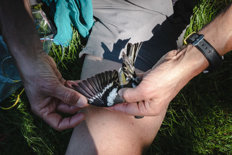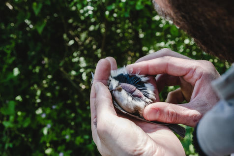 That morning, the guards of the Pyrenees National Park and a ringer from an independent consultancy firm met in the valley for the first capture session. It is 6 o'clock in the morning in Lau-Balagnas, the lights of the headlamps twirl in the darkness. The guards are busy unfolding the nets they set up the day before and which they have taken care to fold up so as not to capture birds during the night. At 6.30 am, the captures can begin, the first passerines are caught in the nets. Fifteen nets were set in bays hidden in the heart of the forest on the edge of the Gave de Pau. The two teams rush into the woods having previously separated the number of nets in half. Every thirty minutes, the two teams of guards have to return to the first net to check that a bird has not been stuck for too long. Once a bird is caught in one of the nets, a bander will remove the enamel. The first observation is whether or not there is a band on the leg. The vast majority of common birds have been banded in France with the mention of the Paris Natural History Museum, but sometimes a bird has been banded abroad, in the case of a migratory bird for example. If the state of health of the bird in question allows it, one of the guards delicately bands the animal. One of the purposes of banding is to find out how long the bird will live and whether it is moving around and for what purpose. The guards and banders then measure the length of the tarsus, the bird's leg between the thigh and the foot where the band is placed. The third step is to measure the wing. Then comes the determination of the sex of the animal when it is adult and sometimes for the young when possible. This determination is carried out according to precise criteria such as the presence/absence of a brood patch, a cloacal protuberance or a colour dimorphism which is the difference in colour contrast found notably on the wings. Guards and banders continue their observations by looking at the state of moulting in the animal. This corresponds to the renewal of the plumage with the loss of old feathers. Then comes the stage of weighing the bird in a cone or small cloth bag. All these steps are carried out as efficiently as possible so as not to stress the animal. The bird is released close to the net so that it can find its bearings more easily.