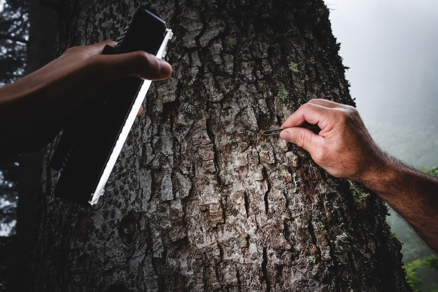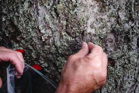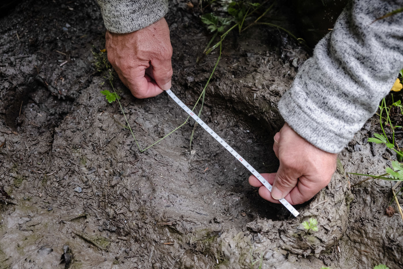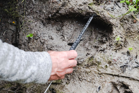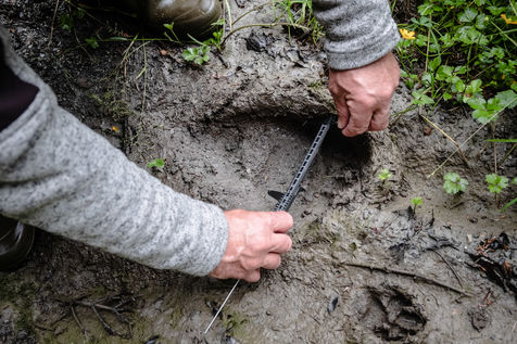 Patrick, guard monitor at the Pyrenees National Park, is doing a bear tour in the Lisey forest. He was informed by a resident of Cauterets of the potential presence of a bear in the area. As he goes into the woods, he finds an imprint of the bear's left front paw, scratches on a tree trunk and hair hanging in the same place. He then goes to pick up hairs from a trap, which consists of a beard and smola, an attractive smelling product. The bear has indeed been there. Carefully, the guard retrieves the hairs from the plantigrade and takes measurements of the animal's paw. In a few months, the results of the laboratory research will make it possible to identify the individual.