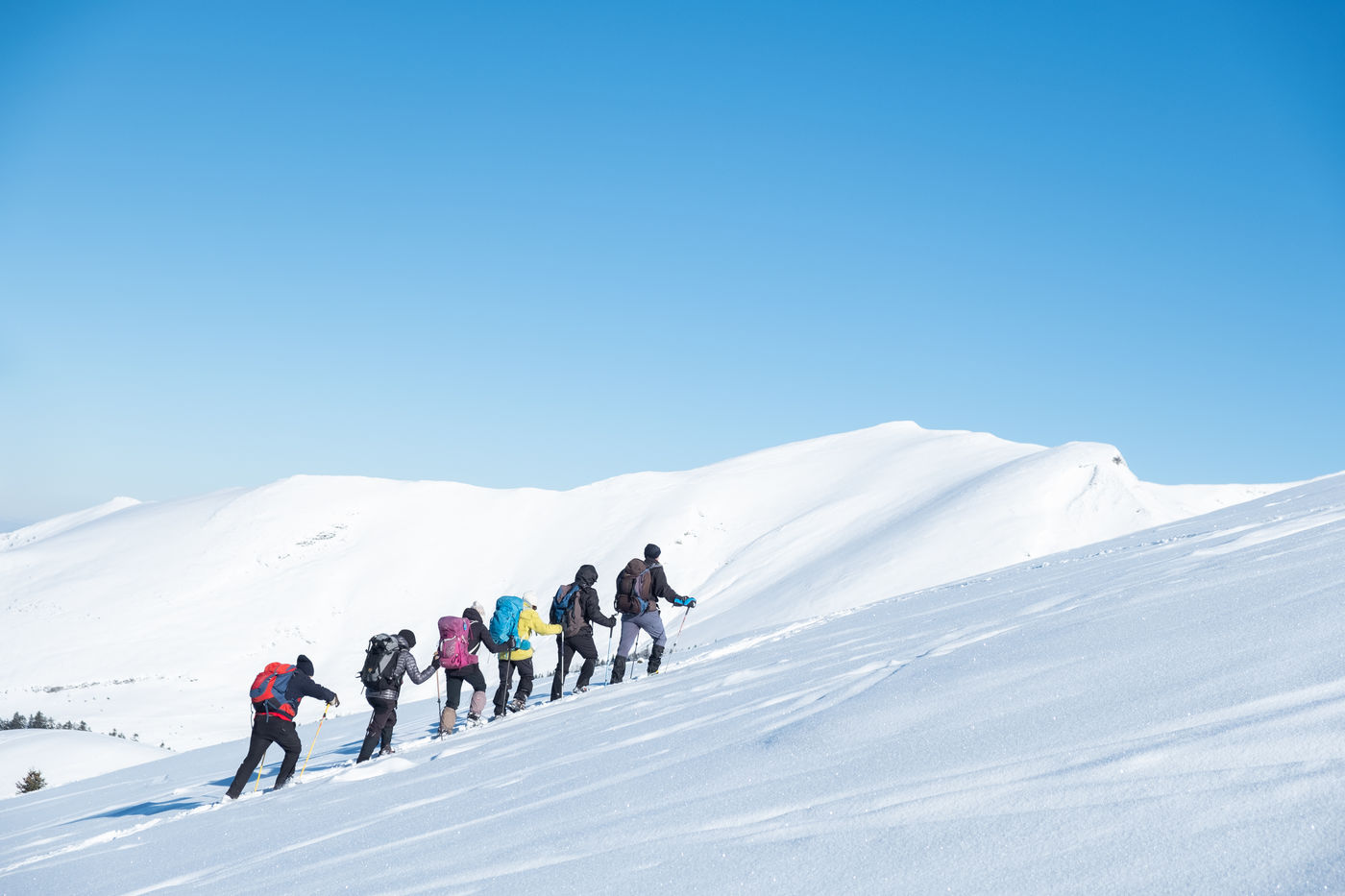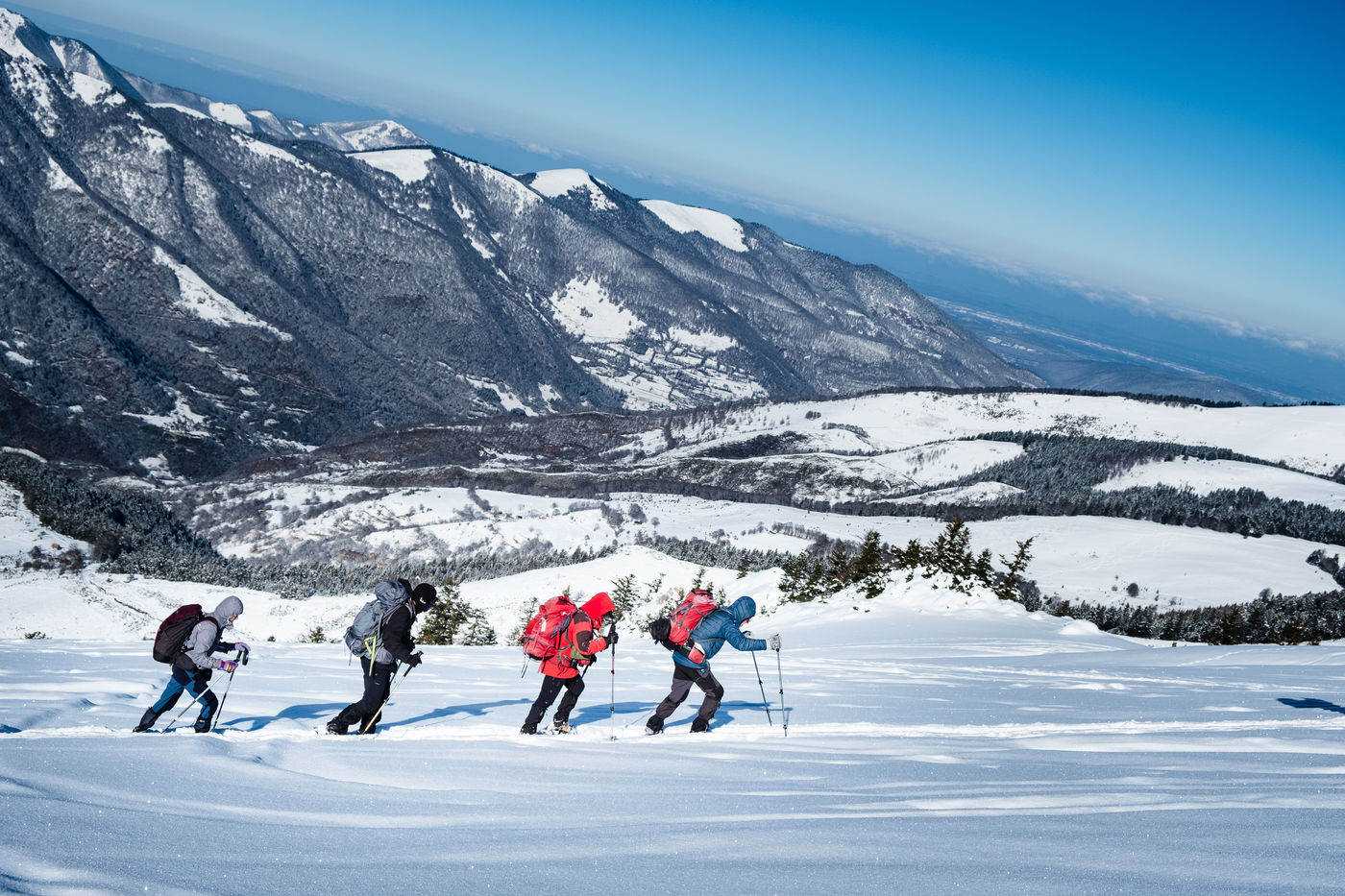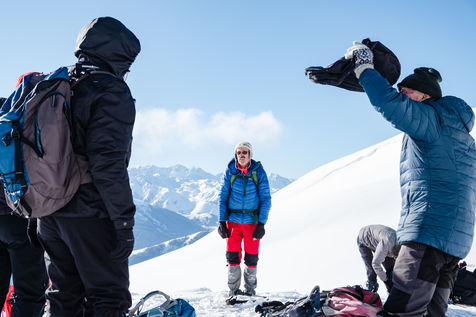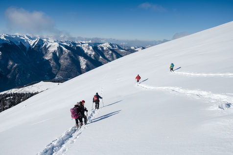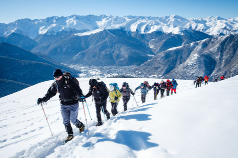 The MCS Montagne is a club for hikers, most of whom are retired. Every week, these nature lovers wander through the Pyrenean peaks in search of the most beautiful viewpoints that the chain has to offer. Without ever forgetting the pleasure of sharing an aperitif and a good meal at the summit. That day, they go on snowshoes to the Peyrehitte huts on the heights of Luchon, at 1900 metres altitude. Neither the cold nor the harshness of the effort breaks the good atmosphere of the group, created in 1992.