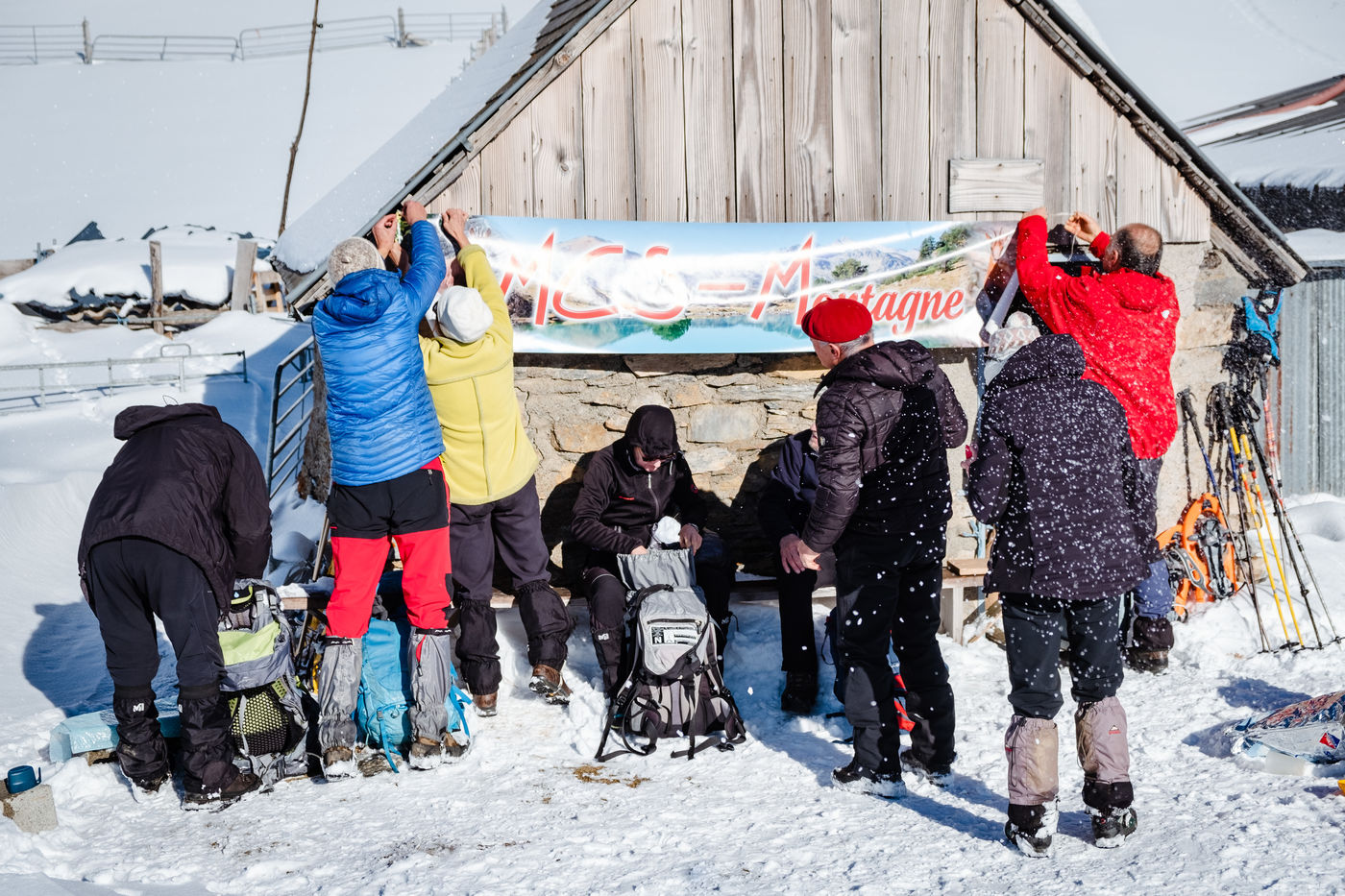 Le MCS Montagne est un club de randonneurs pour la plupart retraités. Toutes les semaines, ces amoureux de la nature parcourent les cimes pyrénéennes à la recherche des plus beaux points de vue qu'offre la chaîne. Sans jamais oublier le plaisir de partager un apéritif et un bon repas au sommet. Ce jour-là, ils se rendent en raquettes aux cabanes de Peyrehitte sur les hauteurs de Luchon, à 1900 mètres d'altitude. Ni le froid, ni la rudesse de l'effort ne viennent rompre la bonne ambiance du groupe, créé en 1992.