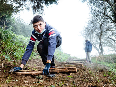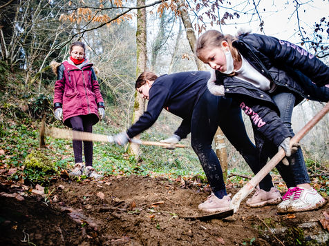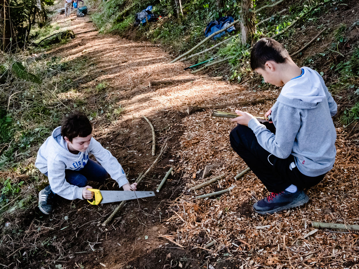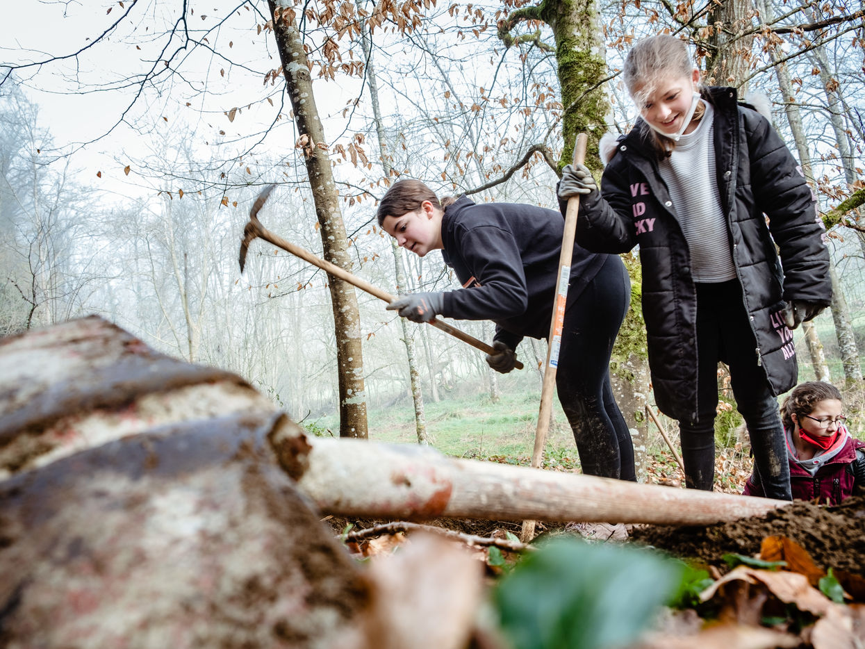 Des adolescents, pour la plupart collégiens, restaurent les sentiers d'un petit village du Comminges. Le centre de loisirs fait ainsi découvrir au ados l'usage d'outils et la solidarité intergénérationnelle. Ici, les jeunes travaillent à la création de marches qui mènent à la fontaine du Barry. Autrefois, les villageois venaient pomper de l'eau à cette source située au bois milieu des bois en contre-bas de la commune. Petit à petit les jeunes s'organisent pour faire renaitre ce chemin qui avait fini par disparaitre sous la végétation encombrante.