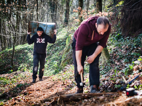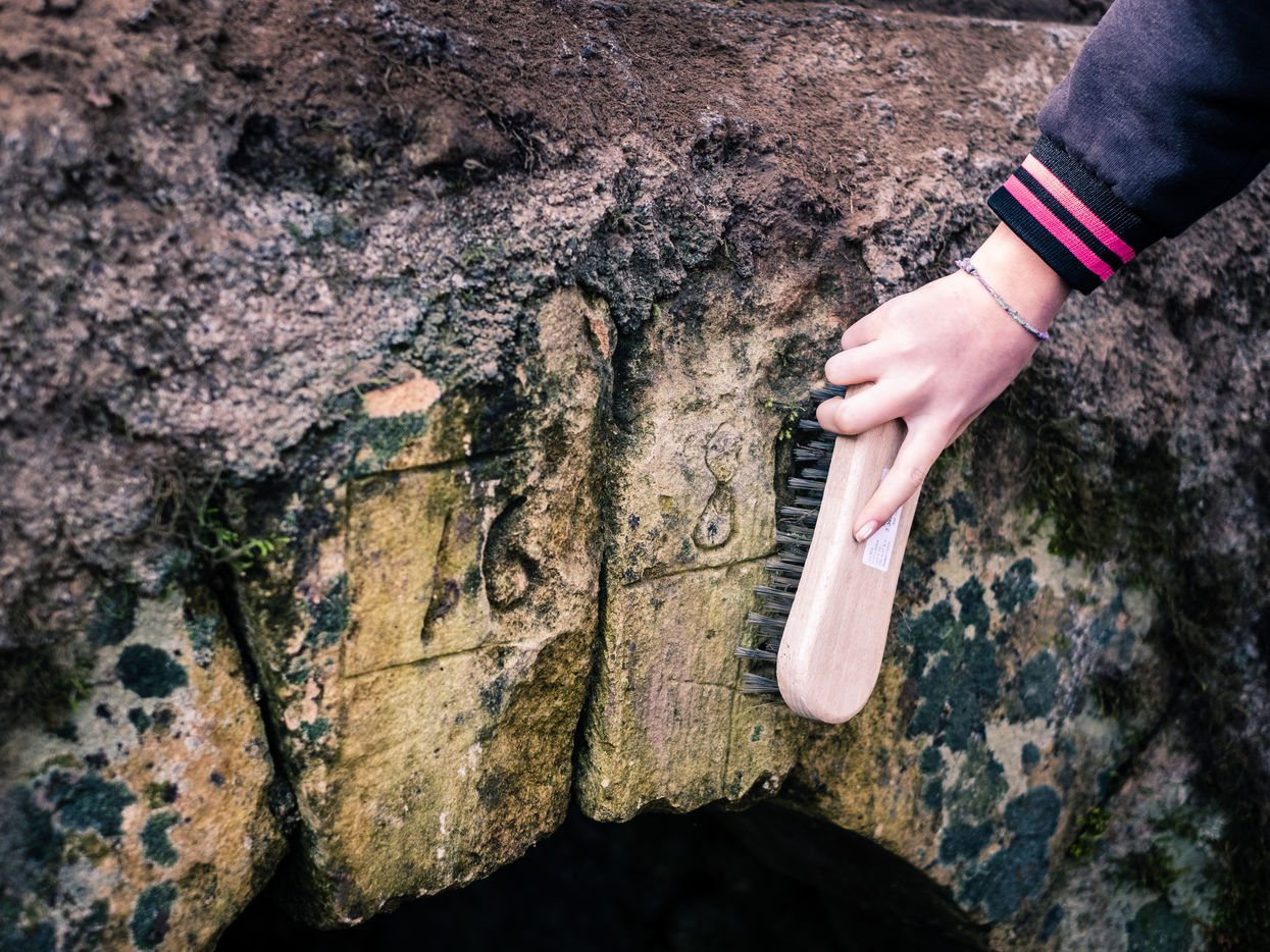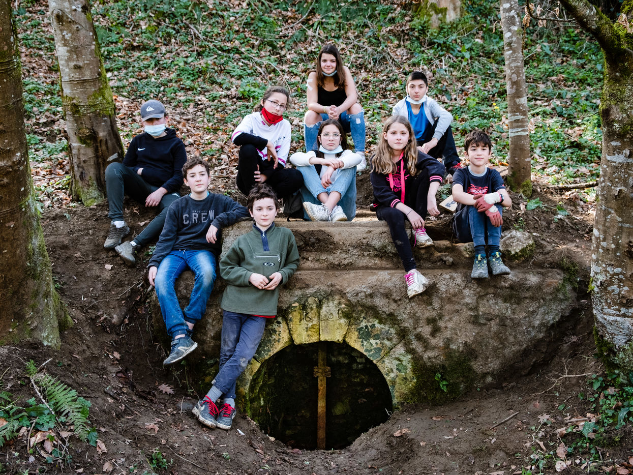 Petit à petit les neuf jeunes s'organisent pour faire renaitre ce chemin qui avait fini par disparaitre sous la végétation encombrante. Après une semaine de travail acharné, le groupe pose fièrement sur la fontaine bâtie en 1860.