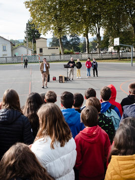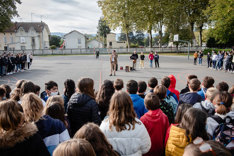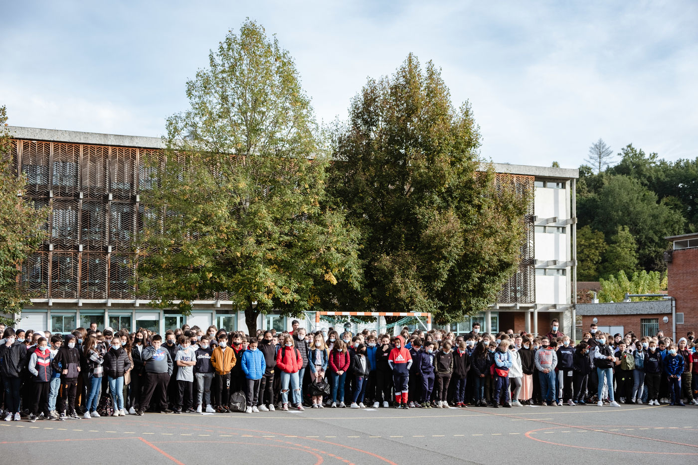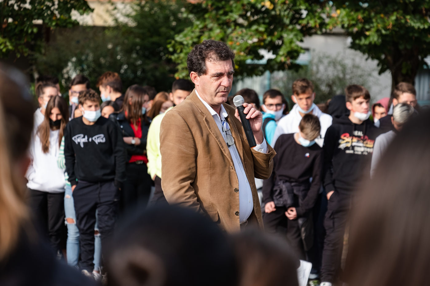 Tribute to Samuel Paty, history-geography and moral and civic education teacher, murdered for teaching and defending the values of the Republic, including freedom of expression. A minute's silence followed a speech by the headmaster of the Collège des Trois Vallées in a solemn and silent atmosphere. A music teacher and some students then played a piece that Samuel Paty liked.