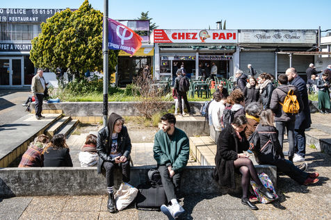 France, Toulouse, Université Jean Jaurès (Mirail), 2022-03-23. In the run-up to the first round of the 2022 presidential elections, the France Insoumise (LFI) deputy François Ruffin, supporter of the candidate Jean-Luc Mélenchon, comes to give a meeting. He is close to the University and his speech of the day is addressed to the youth of Toulouse, addressing the difficult but important subject of student insecurity.