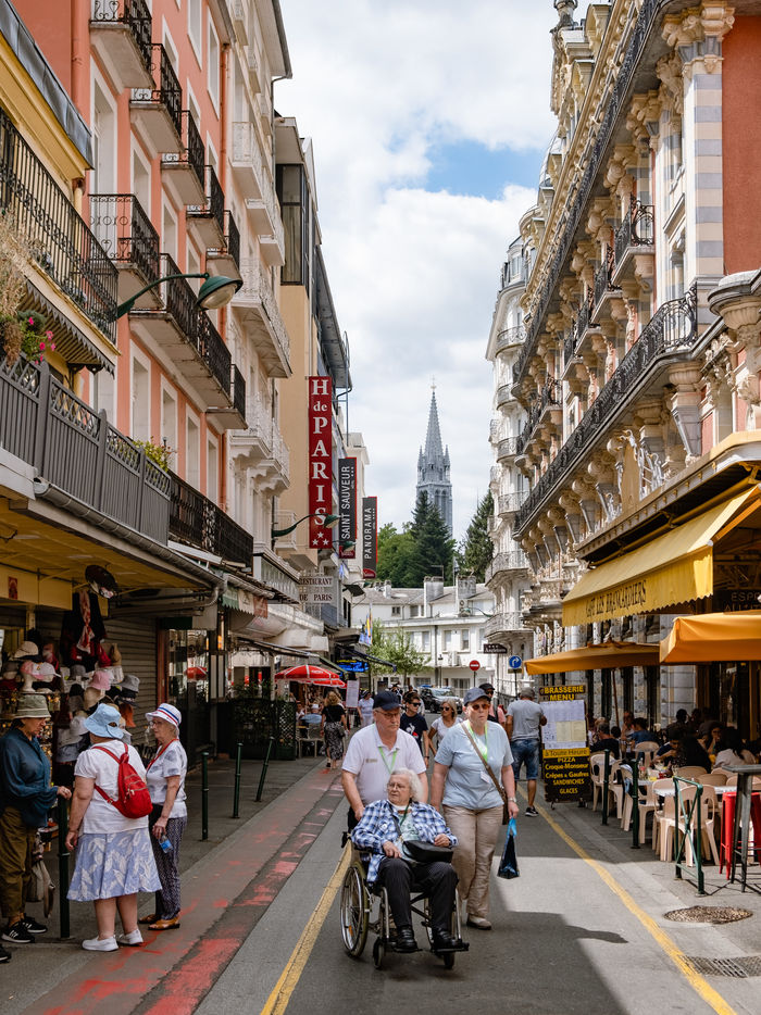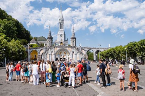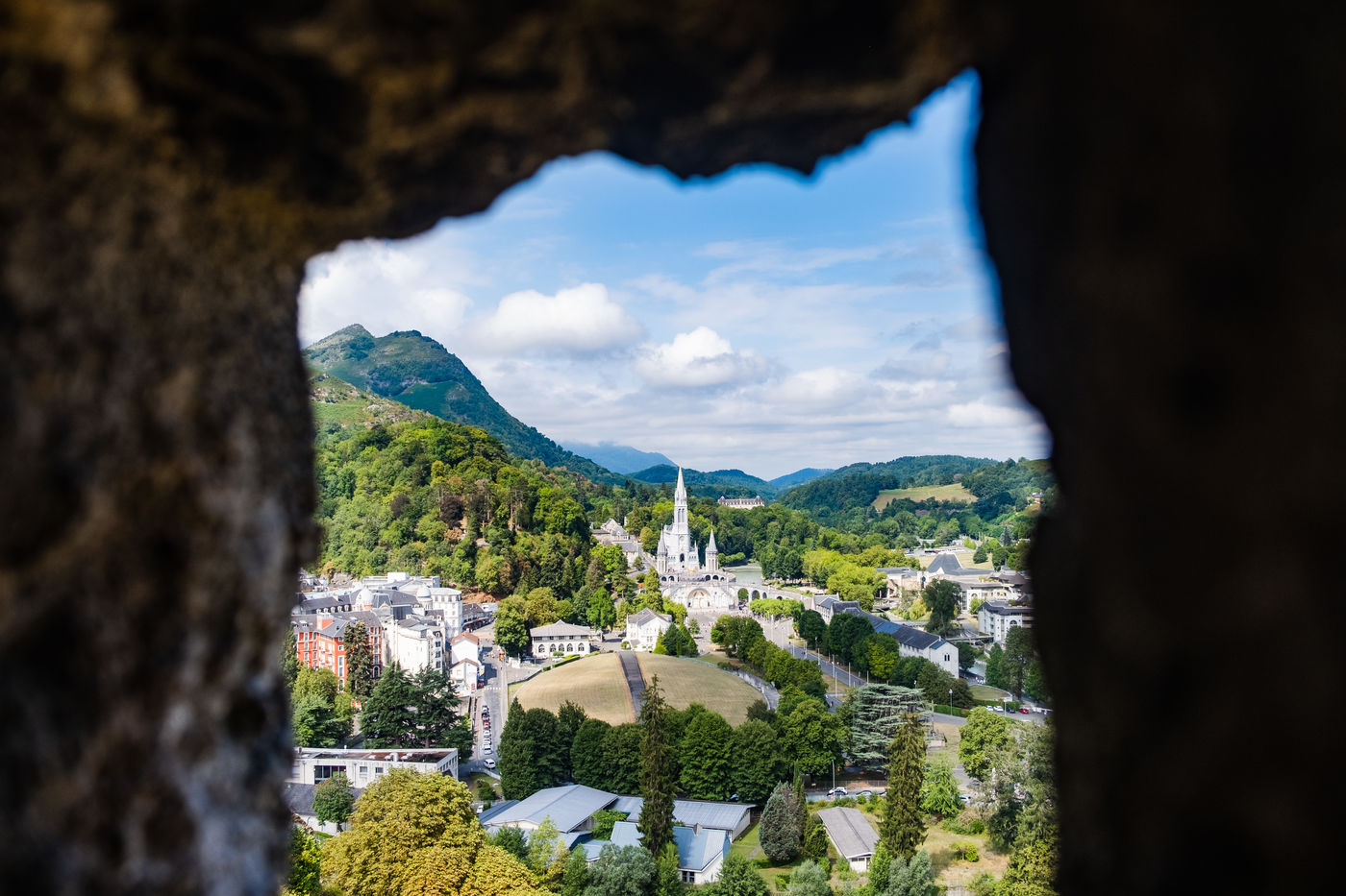 A stroll through the town of Lourdes. Illustrations of the sanctuary, the shopping streets and its castle. A summer in Lourdes.