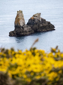 Illustrations of Ushant Island on a rainy day. The landscapes sculpted by the wind and the tides are revealed. The lighthouses continue to watch over this piece of land in the middle of the Iroise Sea.