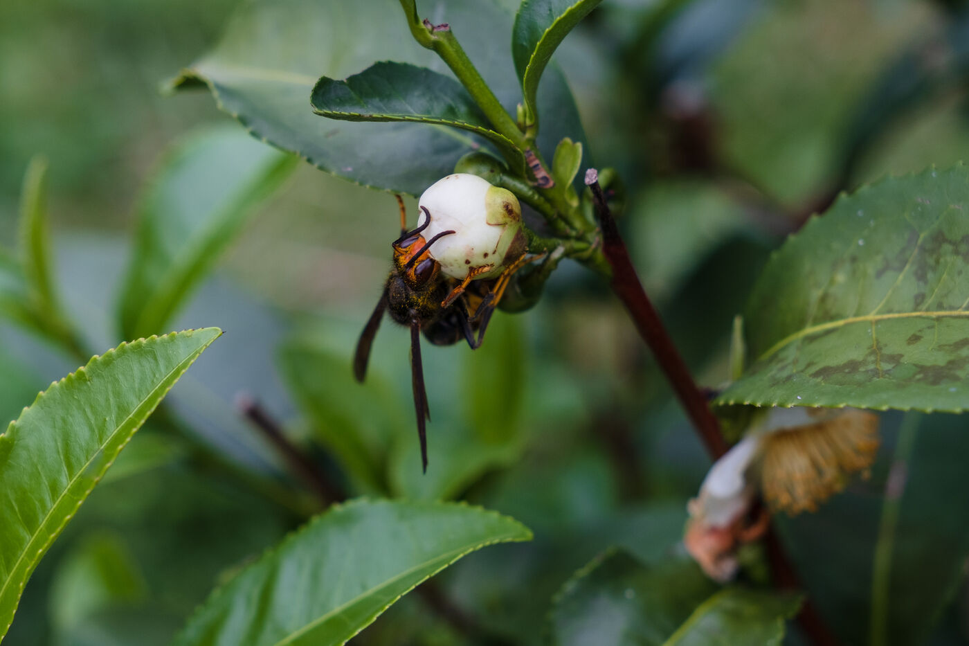 Lucas Ben Moura chose to plant his first tea plants on the hillsides of Argelès-Gazost, on land belonging to his family. This plant from the camellia family adapts well to the climate of the Pyrenees. A graduate of AgroParisTech, the young man first became interested in wine before falling in love with tea. During a gap year in his studies, between 2018 and 2019, he flew to Indonesia, where he carried out two internships. One in a small village and the other in a huge tea plantation. He then went on to Laos and China. There he studied tea growing at close quarters and refined his knowledge. Just before leaving for Asia, he had planted around thirty plants on neglected family meadows, previously occupied by farmers who had since retired. With no idea of what to expect, these first plants made it through the winter.