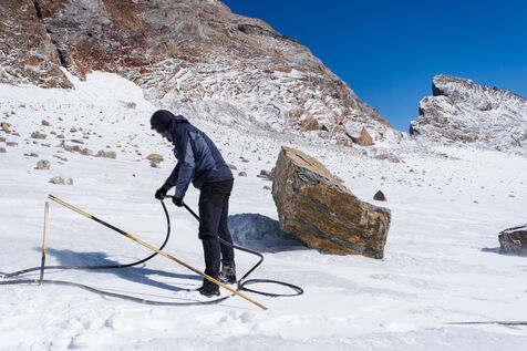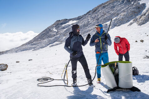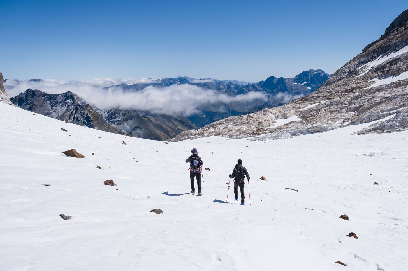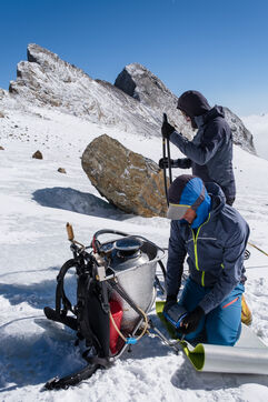 Glaciologists at the bedside of the Ossoue Glacier in the Pyrenees