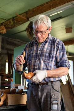 In his workshop, which overlooks the mountains, Pascal maintains an ancient craft: Bethmale clogs. Recognisable by their long, tapering toes, they are worn by the valley's folk dancers and are the delight of collectors and museums. Pascal also makes clogs for gardening and small objects such as pencil holders and corkscrews. He also organises guided tours of the workshop for schools, businesses and tourists. This diversification is essential to the survival of his craft. And to the survival of a technique of which he has been the sole guardian for forty years. But not for much longer...