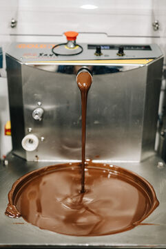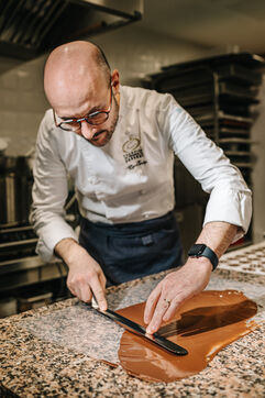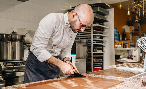Rémi Touja, a patissier in Carcassonne, works with chocolate in his laboratory. He won the title of French Dessert Champion in 2013. With the festive season just around the corner, demand is growing fast.