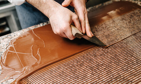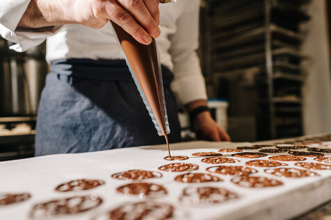 Rémi Touja, patissier à Carcassonne, travaille le chocolat dans son laboratoire. Il a obtenu le titre de Champion de France de dessert en 2013. A l'approche des fêtes, la demande est en forte croissance.