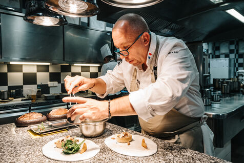 Franck Putelat, Chef 2 étoiles Michelin et MOF dans son restaurant le Parc à Carcassonne (Aude - Occitanie).