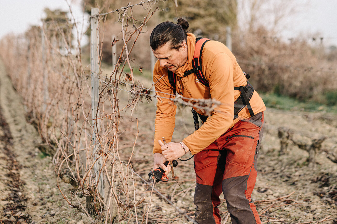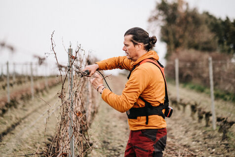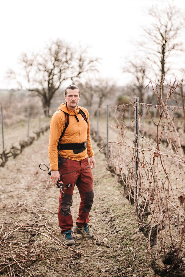 Frédéric Palacios from Domainde de mon Père (AOP Malepère) prunes the vines. With his approach to viticulture, he is one of the forerunners in the world of natural wines in the Aude.