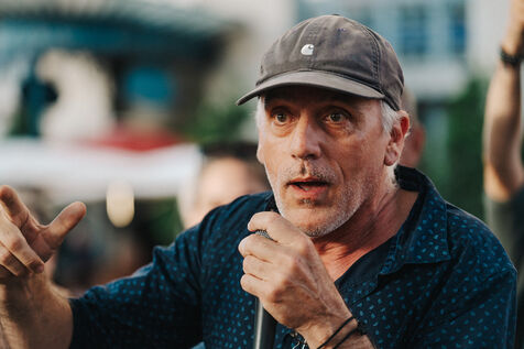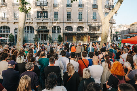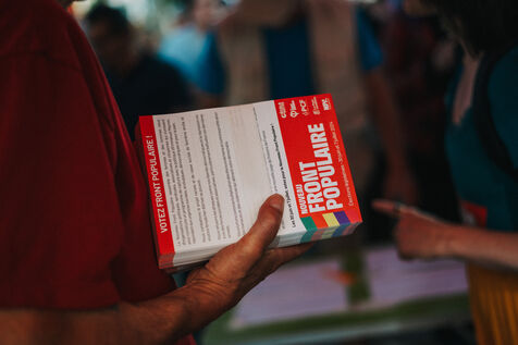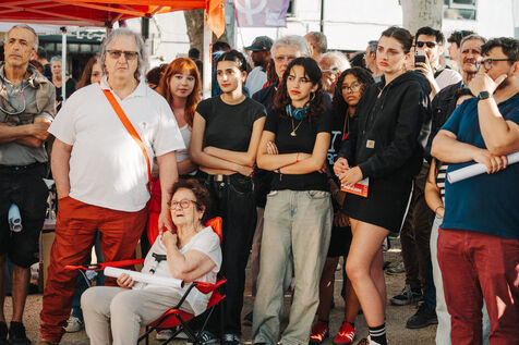 Meeting in Carcassonne of Philippe Poutou, spokesman for the NPA, candidate in the 2024 legislative elections in the first constituency of Aude for the Nouveau Front Populaire.