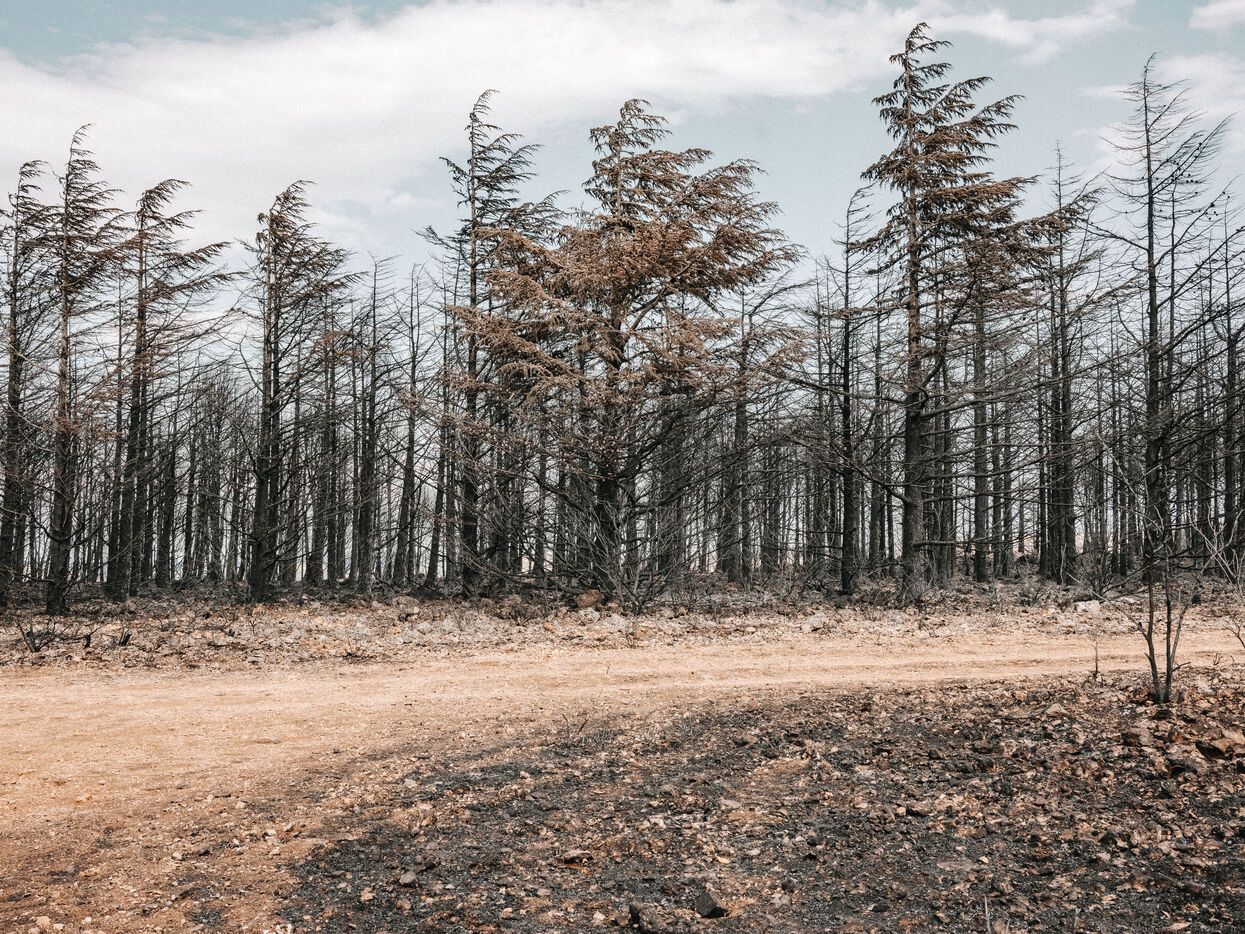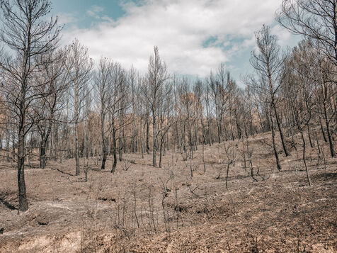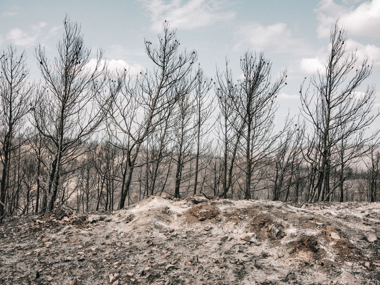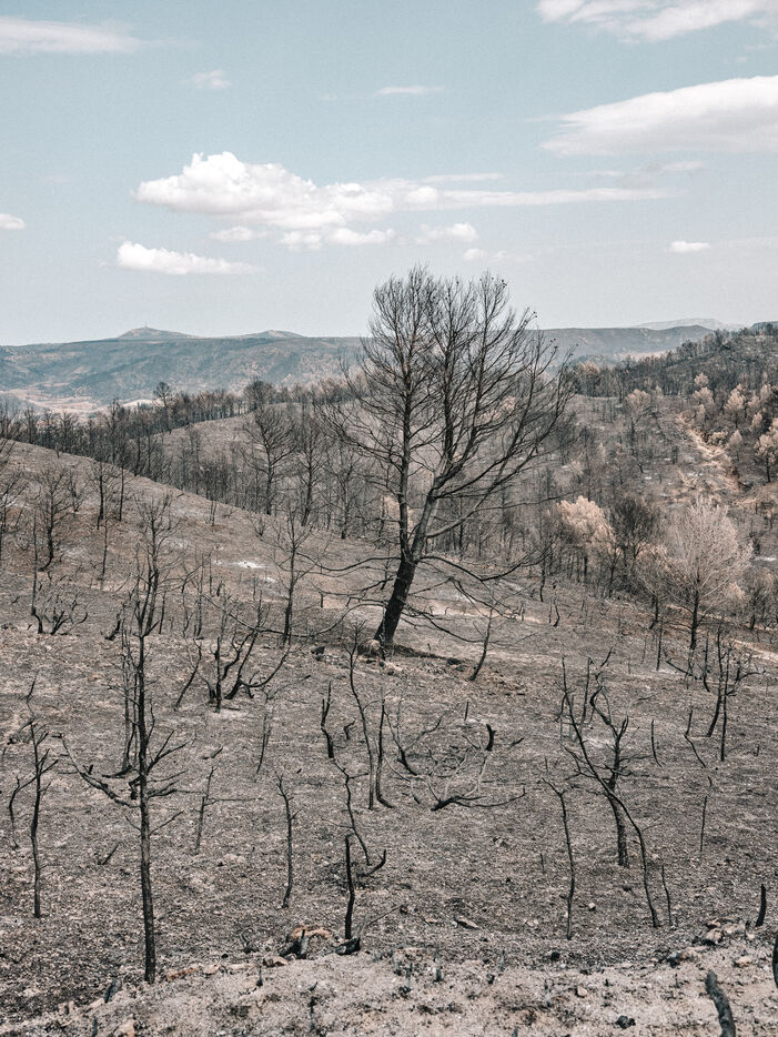 Paysages du Massif des Corbières après l'incendie d'août 2025. 17 000 hectares ont été brulés en quelques jours ce qui fait de cet incendie le plus important en France depuis 80 ans.
