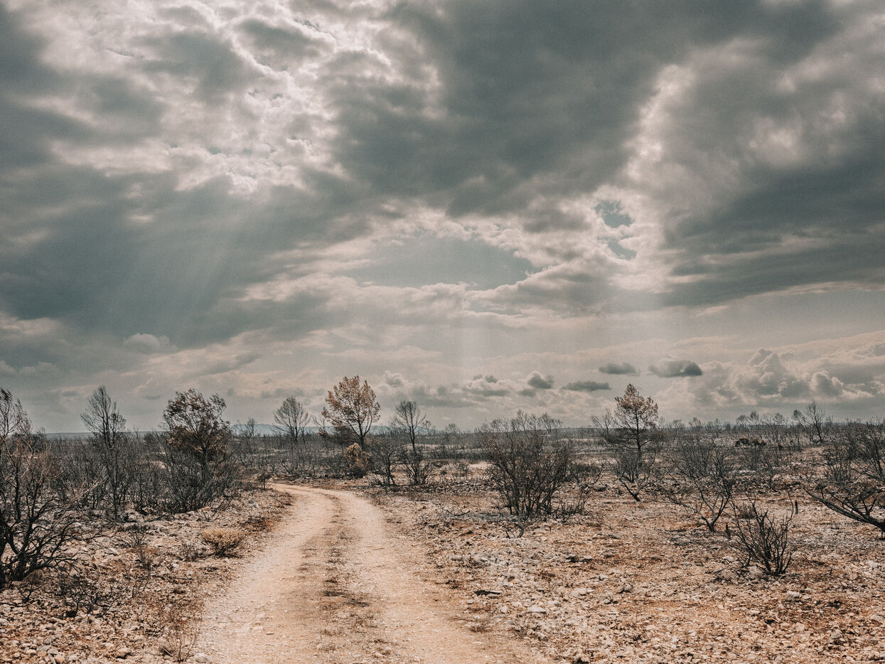 Landscapes of the Corbières Massif after the fires of August 2025. 17,000 hectares were burned in a few days, making this the largest fire in France in 80 years.