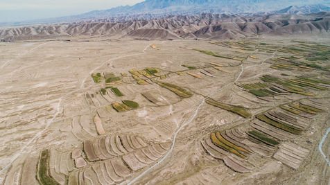 Nous sommes sur un plateau à 2100 mètres d'altitude au pied des monts Qilian et le désert de sable du Tenggeli est à moins de 100 km. Le climat est rude ici. Très chaud en été et glacial en hiver, Yongtaï est constamment balayée par des vents puissants. D'ailleurs les autorités ne s'y sont pas trompées, et depuis que la Chine a décidé de rentrer dans le concert des nations qui oeuvrent contre le réchauffement climatique, les forêts d'éoliennes ont remplacé les conifères d'avant et des hectares de champs de panneaux solaires sont désormais les cultures d'avant-garde (Pour rappel, en 2015, le Gansu a installé en 4 mois autant de panneaux solaires qu'en compte la France).