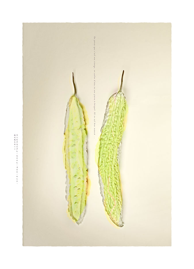 Ce sera donc la cuisine qui sera mon prétexte à l'expression de cet écart culturel, ou plus exactement les ingrédients bruts que je croise sur les étals des marchés et qui me sont énigmatiques. Et qui le resteront, faute de pouvoir lire leurs noms, questionner le chaland ou même ouvrir le dictionnaire.