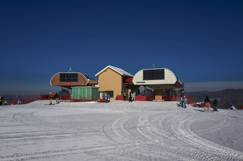 Pourtant, avec des temperatures extremes l impression d hiver est bien la et meme si le paysage est assez deroutant avec ces montagnes arides qui entourent la station, on pourrait s y tromper et penser que la neige est naturelle ! Mais celle-ci vient d une armee de canons a neige disposes tout le long des pistes et il faut bien dire que sa qualite est exceptionnelle, moelleuse comme du sucre glace et sans aucune plaque de verglas.