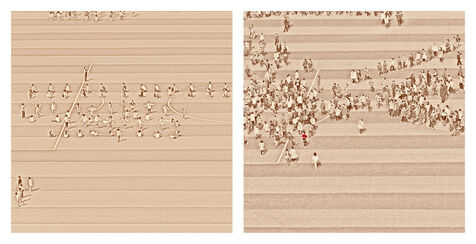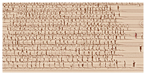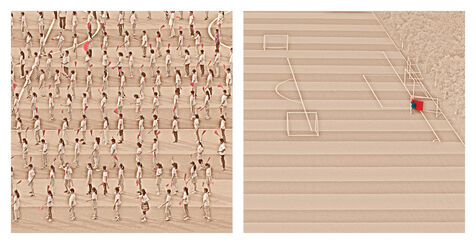 Beyond the effect of mass and uniformity which we can feel by looking at these scenes in their global nature, we realize by looking closer and in detail whom these children, taken individually, are as all the children of the world: lively, turbulents, sometimes obedients, sometimes undisciplined, attentives or not, serious, exuberants, cheerful persons, players.