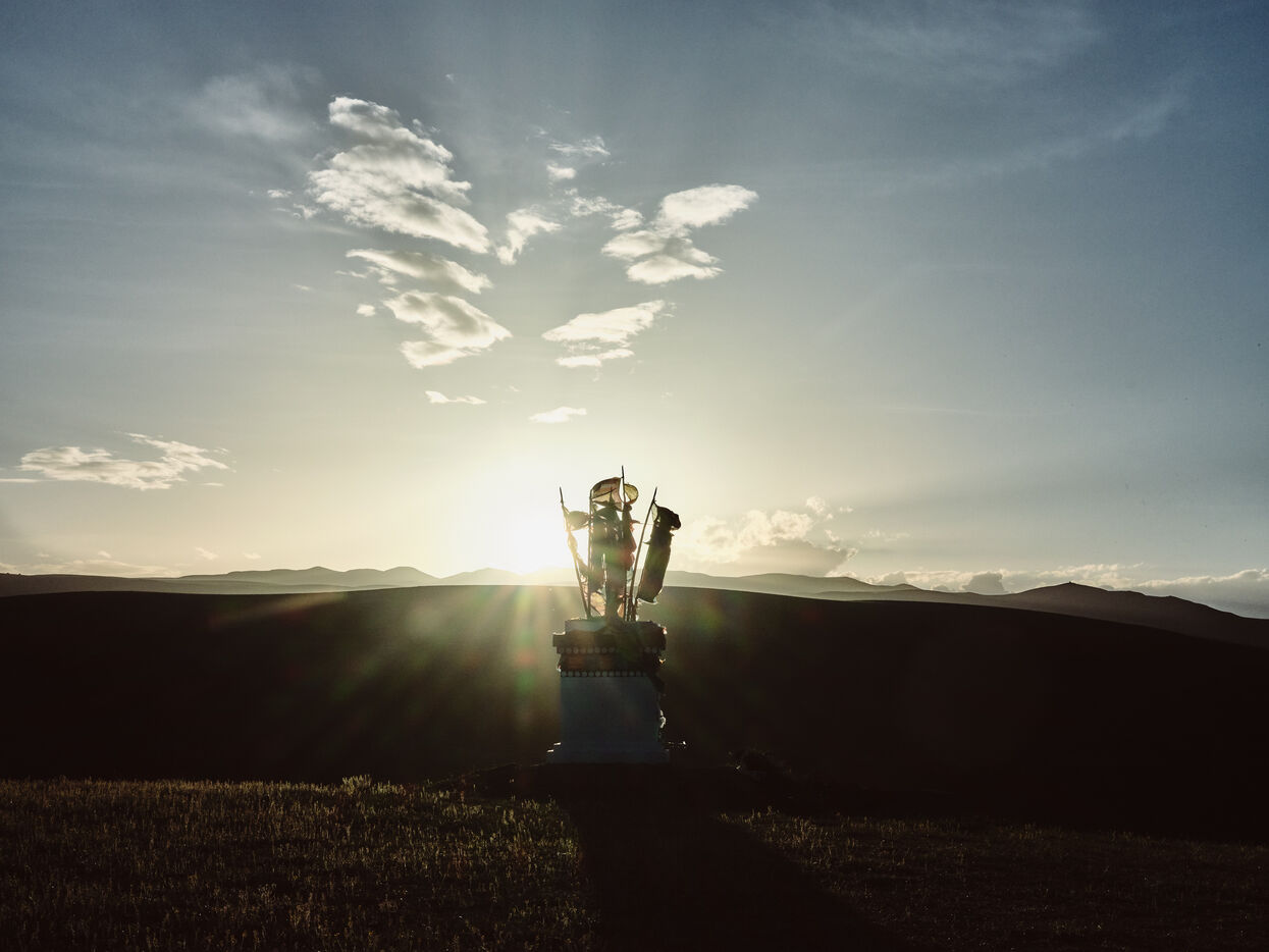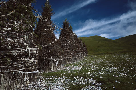 Ici, il est impossible d?échapper à la religion. Partout, sur le moindre monticule, sur chaque tente, chaque maison il y a des drapeaux de prière. Autant il y a peu d?habitations et de villages, autant on croise un nombre impressionnant de monastères, tous plus gigantesques les uns que les autres avec leurs pagodes et leurs dortoirs pour les innombrables moines qui y séjournent et les pèlerins qui sillonnent la contrée.