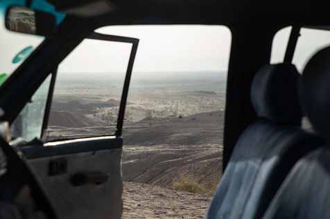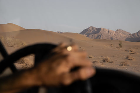 And so the driver's seat can so easily become a sort of makeshift shelter. Generally, one naps badly, in the time it takes to wait for a missing part or that a new tire is brought by another taxi? or some other marginal that one might cross in the desert.