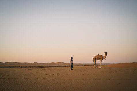 In the heart of the Algerian Sahara, the undulating dunes capture the changing light of the sun, creating a play of shadows and reflections that paint a spellbinding picture of the desert's solitude and grandeur. Each shot reveals the silent immensity of these timeless landscapes, where time seems suspended and man is confronted by the implacable power of nature.