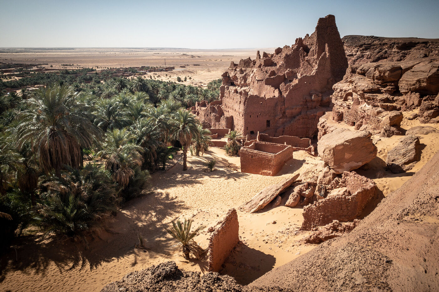 Dans cette série photographique en Algérie, le désert s'étend à perte de vue, entrelaçant la beauté austère de ses dunes de sable avec les trésors architecturaux des villes oasis de Timimoun et Ghardaia.