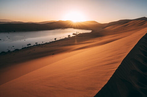 In the heart of the Namib Desert, the reddish sand dunes stretch as far as the eye can see, creating an unreal and moving landscape. Each shot captures the silent immensity of this million-year-old desert, where the dunes seem frozen in time, silent witnesses to the passage of centuries.