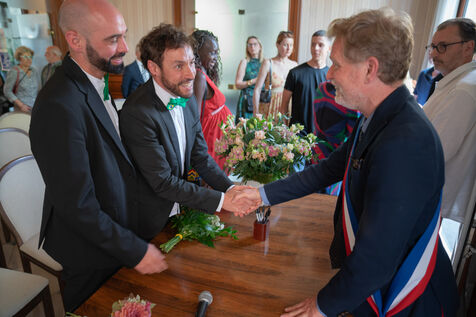 The first gay marriage was conducted illegally in France by Greens mayor Noël Mamère 20 years ago on this date, and became legal only 9 years after with Taubira Law on the 23rd of april 2013. The actual mayor, ecologist also, Clément Rossignol Puech, wanted to celebrate his town social comitment.