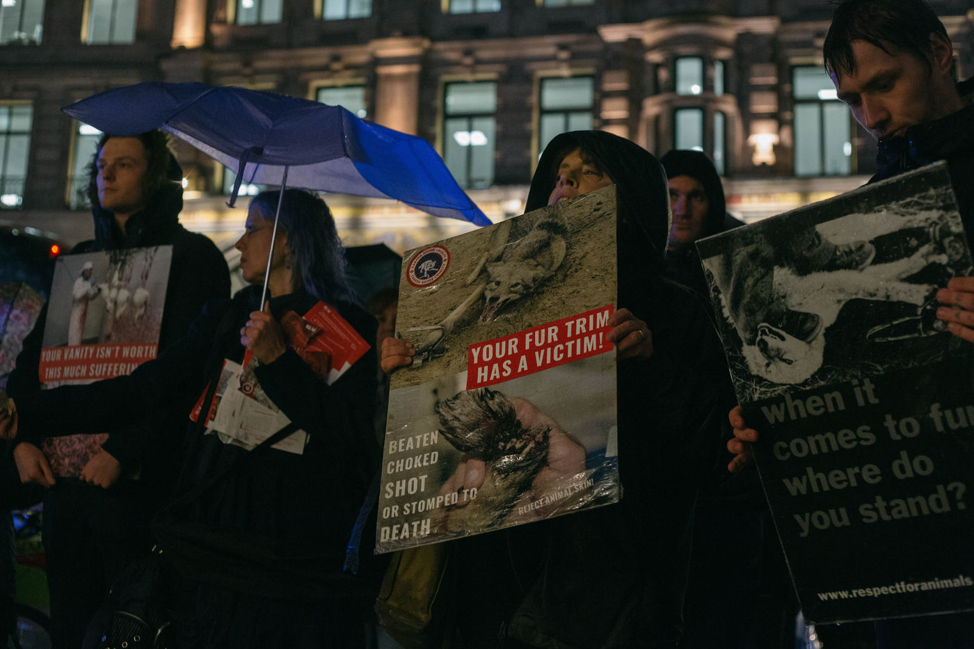Ils protestent contre l''usage de fourrure animale dans l'industrie du textile mais aussi contre les maltraitances animales.Ce petit groupe d?activistes est très actifs et n'hésitent pas à mener des actions tel que envahir des abattoirs et des lieux de maltraitance animalière. Les échanges entre les membres de la direction du magasin et les manifestants sont souvent assez violent et finissent avec l'arrivée de la police sur les lieux.