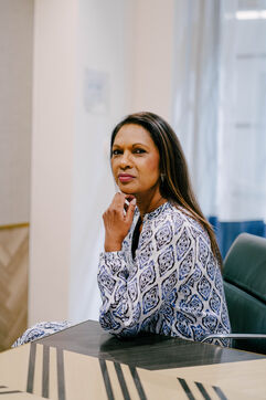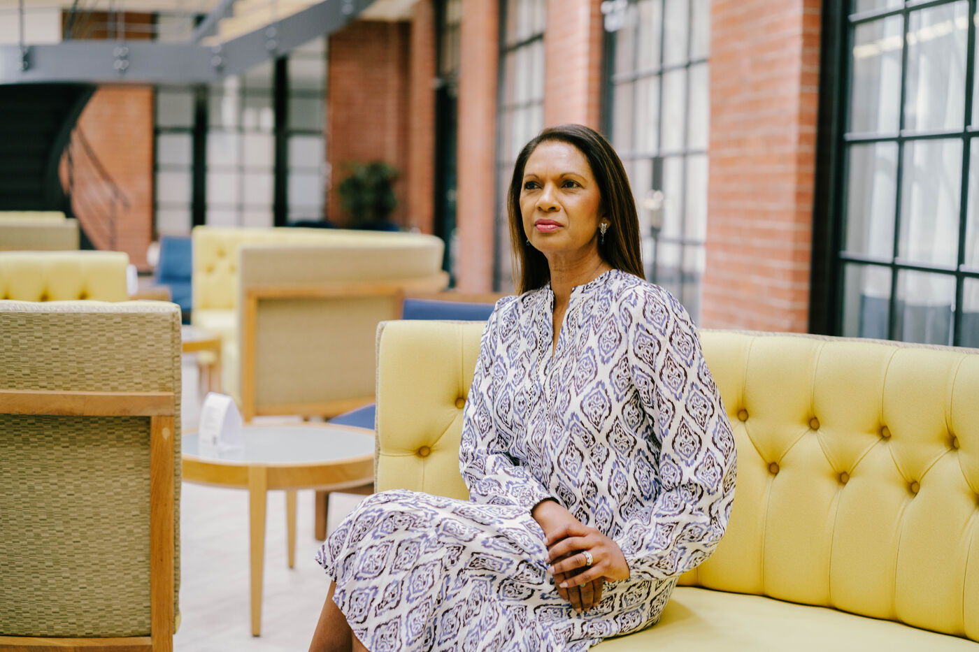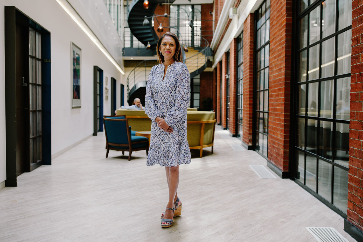 Portrait of Gina Miller, founder of the True and Fair party at Michellin House, Chelsea, London for the Financial Times.