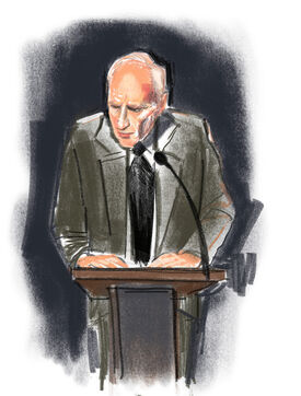 Drawings based on archives and photographs from the trial of Maurice Papon, accused of crimes against humanity and tried at the Gironde Assize Court from October 8, 1997 to April 2, 1998.