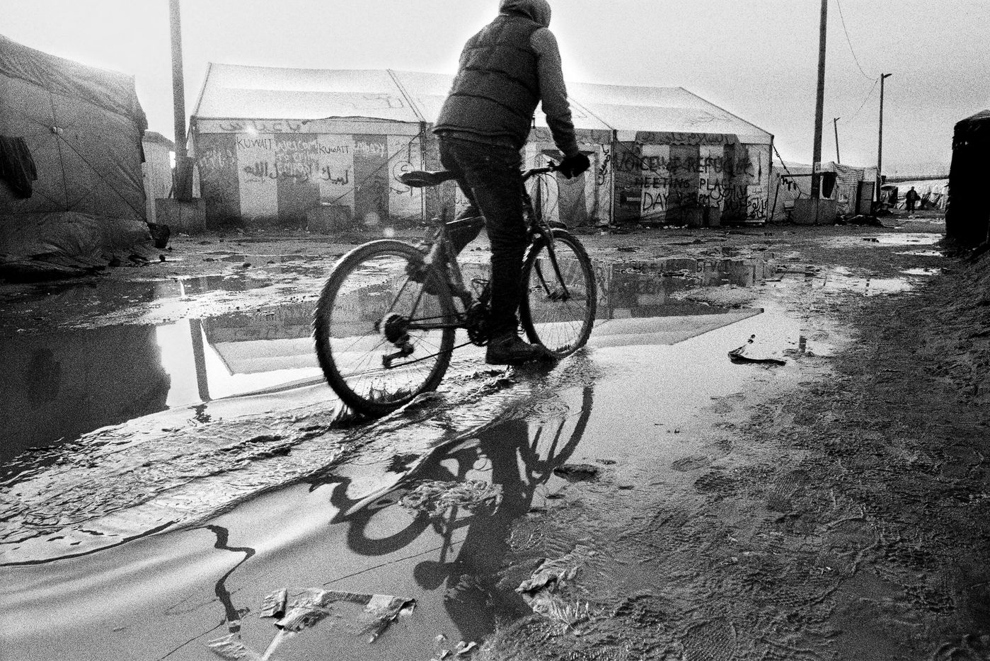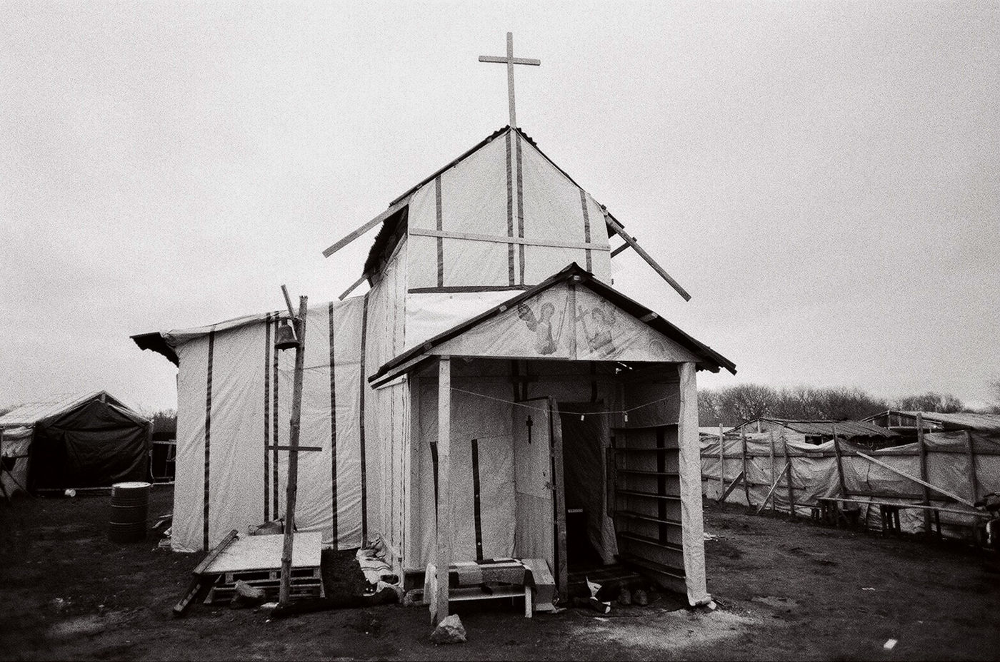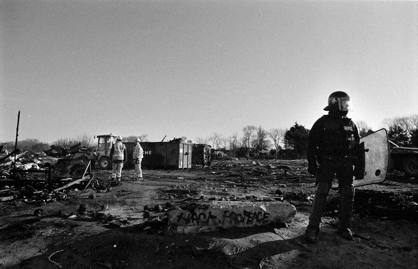 L'odeur de plastique brulé, les pieds dans la boue ; pas de doutes, nous sommes bien arrivés dans la « jungle » de Calais. Depuis ce terrain vague industriel, près de 5 000 migrants espèrent traverser la Manche. Venus d'Afrique et du Moyen Orient, ils ont fui la guerre ou les difficultés économiques. Certains ont bravé la Méditerranée, d'autres traversé l'Europe de l'Est en passant par la Turquie. Face à une frontière anglaise étanche, ils sont aujourd'hui bloqués à 40 kilomètres de leur « terre promise » qu'ils distinguent depuis le rivage. Freinés par les forces de l'ordre qui repoussent leurs tentatives de passages, leur incroyable détermination semble irréductible. C'est dans un contexte mêlant déracinement, espoir, joie, tension et déception, que nous nous sommes immergés au coeur de la « jungle ». Un témoignage qui relate une situation complexe, dans laquelle des hommes, des femmes et des enfants tentent chaque jour, de rejoindre l'Angleterre. Ces photographies montrent un espace en constante mutation : d'une journee à l'autre, une tente apparait, une autre disparait. Cette construction et déconstruction de l'espace est à l'image de l'identité de ses habitants : des personnes en mouvement, en quête d'un avenir meilleur. Que l'on parle de « refugiés » ou de « migrants économiques » , le constat est le même : c'est une société déracinée. Si le lieu est indigne et repoussant, l'humanité de ses habitants, elle, reste intacte. Quelques mois plus tard, en mars 2016, la situation a changée. Un vaste champ de ruines, voila ce qu'il reste de la zone sud de la Jungle de Calais. Il aura fallu deux semaines aux autorités pour démanteler les 7,5 hectares de cabanes et en déloger les 2000 migrants. Destruction de « lieux de vie », violences policières, inhumanité ; très controversée, l'initiative de l'Etat est assaillie de critiques. Pourtant, des alternatives sont proposées aux migrants. Peu médiatisées et denigrées par le milieu associatif, l'Etat offre des solutions d'urgence, parfois insufisantes, et un accompagnement vers la demande d'asile.