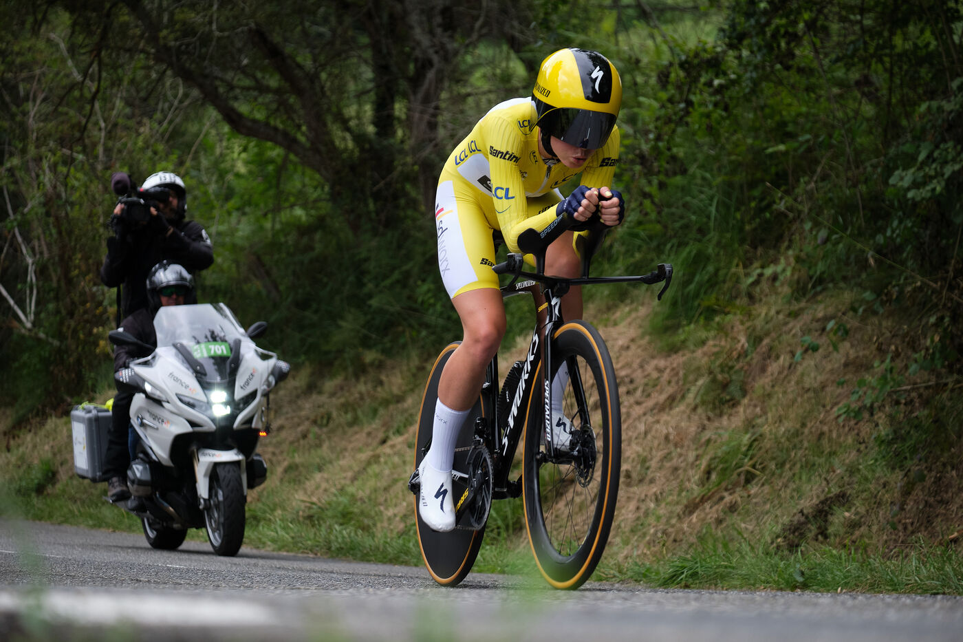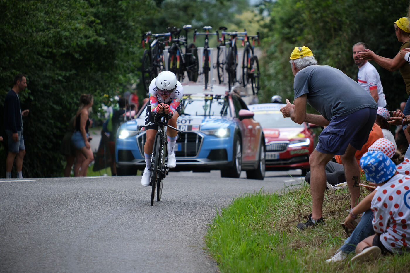 8th and final stage of the 2023 Tour de France Femmes: Dutch rider Demi Vollering, wearing the yellow jersey after her victory at the Tourmalet, finished 2nd in the time trial in Pau and won her first Tour de France Femmes at the age of 26. Swiss cyclist Marlen Reusser completed the time trial in 29'55" and claimed victory for this stage.