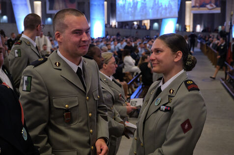 Un an plus tard, Hugo revient au Pèlerinage Militaire International, prêt à recevoir la confirmation. À ses côtés se trouve Manon, sa marraine et caporale dans le même régiment, qui l’accompagne tout au long de cette démarche spirituelle. Lors de cette messe, 205 militaires ont étés baptisés et 500 ont reçu la confirmation.
