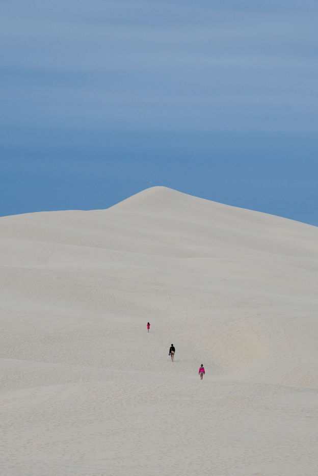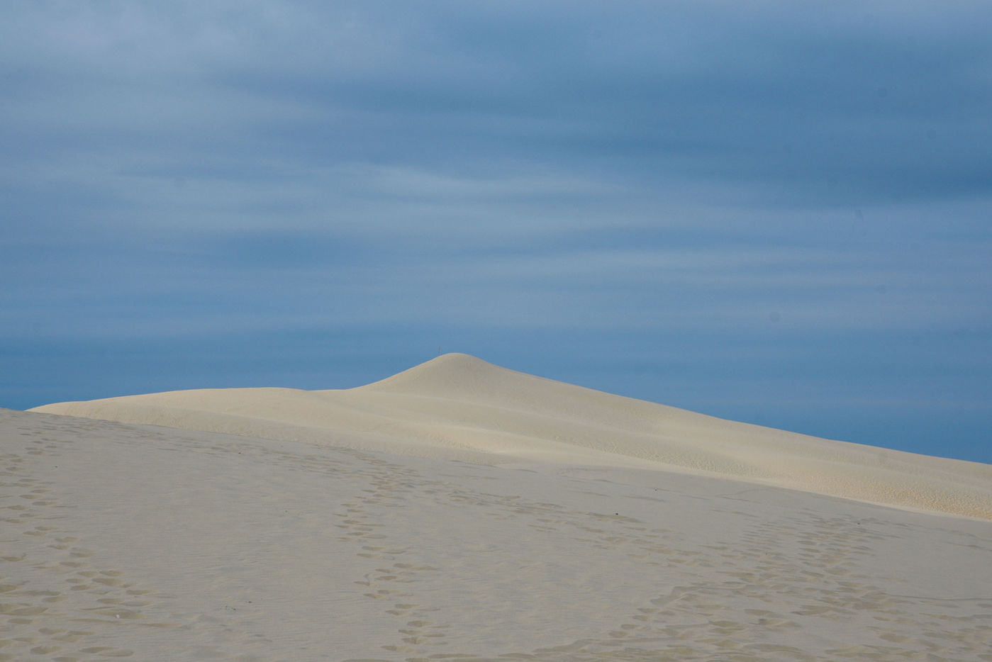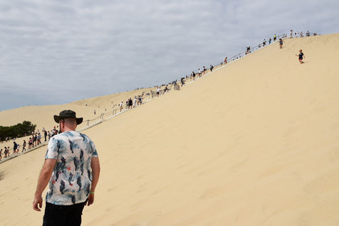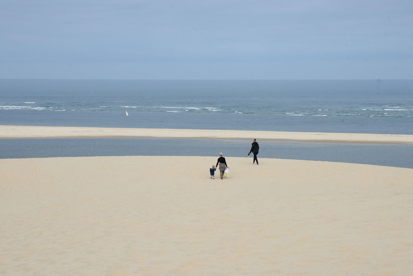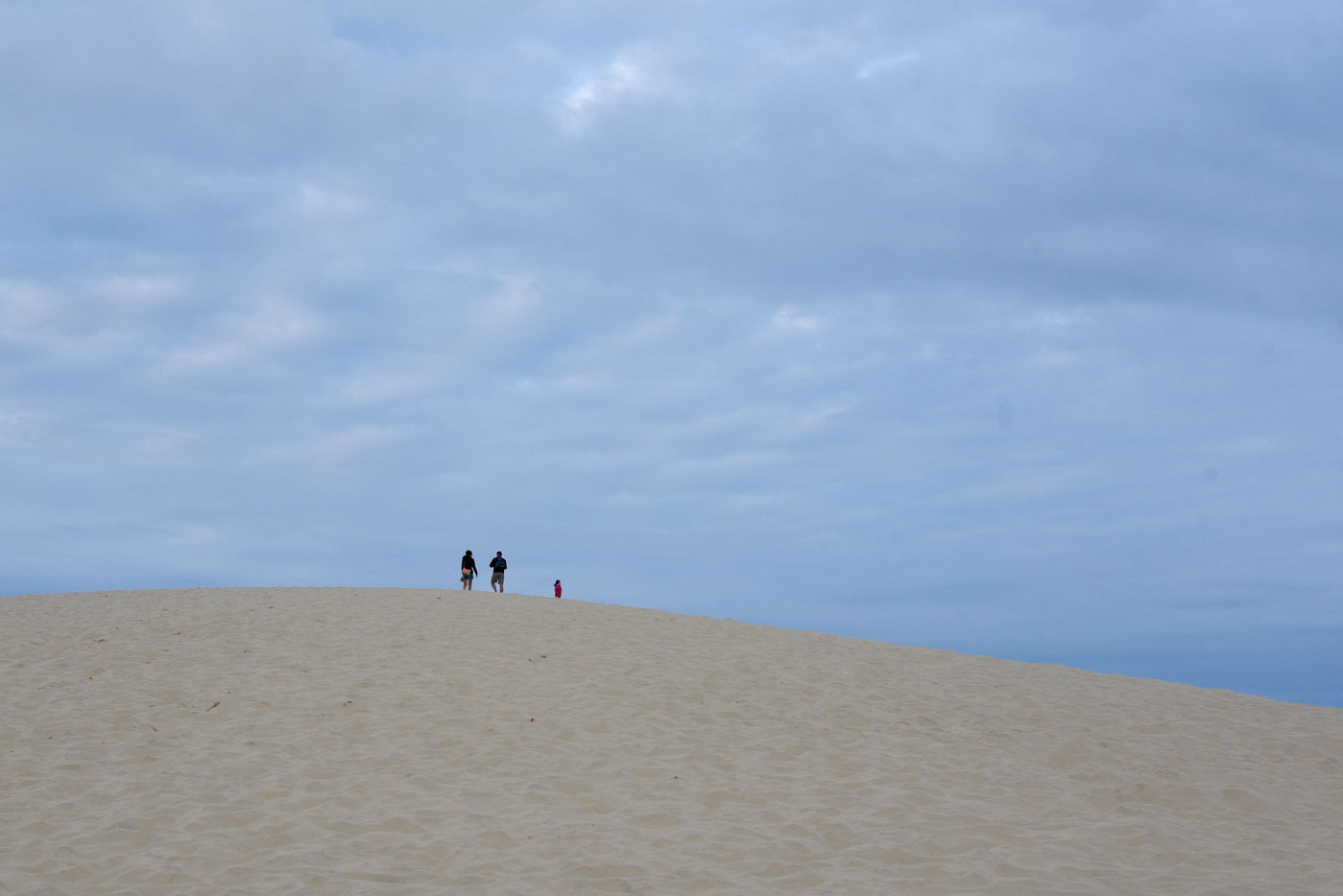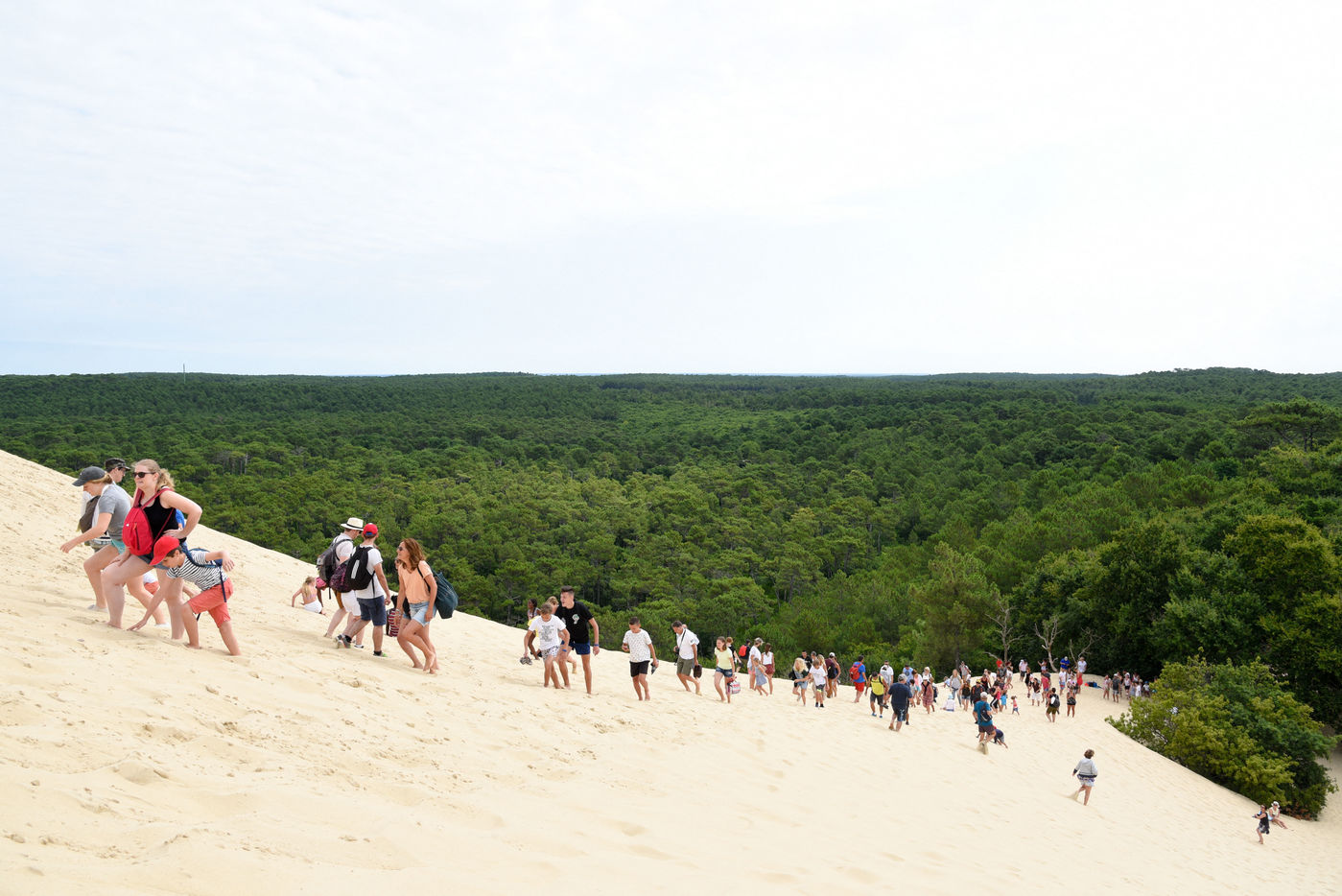 Des premières heures du jour dans la quiétude jusqu'à la fin de matinée avec l'arrivée de centaines de touristes, promeneurs, curieux... Avec près de deux millions de visiteurs par an, le site de la Dune du Pilat sur la commune de la Teste de Buch, reste particulièrement prisé avec ses 106,6 m de haut, 3 km de long, des millions de m3 de sable fin et 4000 ans d?histoire sous l?action des vents et des marées. Un patrimoine naturel unique en Europe.
