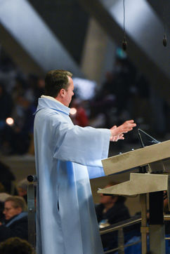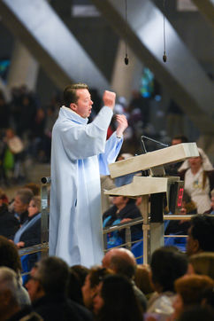 Le maitre de choeur et chantre de Lourdes, Frederic Dupuy. Après avoir connu le choeur d'adultes de la maitrise de Notre-Dame de Paris, il a rejoint Lourdes en 2004 pour etre un des deux chantres au sanctuaire de Lourdes avec la maitrise de six langues, du latin... Chantre est un metier meconnu en France surtout reconnu en Ile-de-France alors qu'il est exerce depuis des millenaires. Rares sont ceux qui en vivent en France.